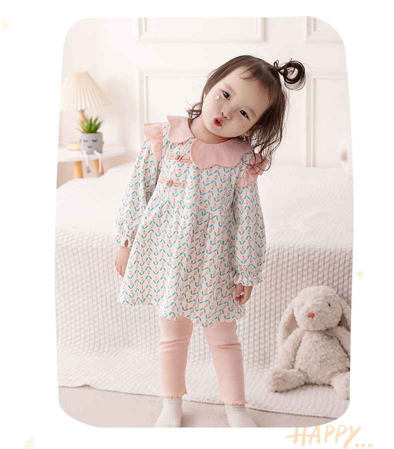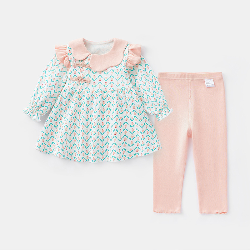 아기의 긴 소매 세트 2024 봄 소녀 아기 중국 스타일 투피스 세트 꽃 봄과 가을 아동복 바지 3533