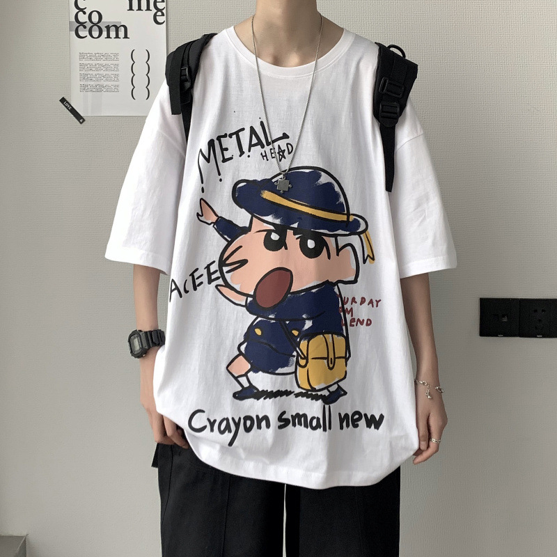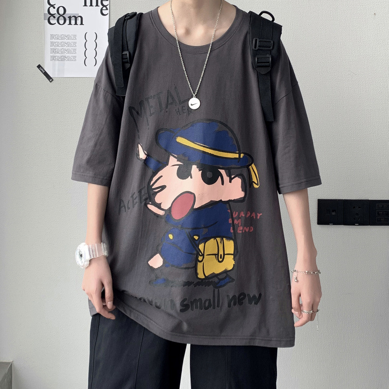 여름 트렌디 브랜드 인즈 카툰 프린트 반팔 티셔츠 남성용 한국식 루즈 올매치 티셔츠 힙합 트렌디 반소매 티셔츠