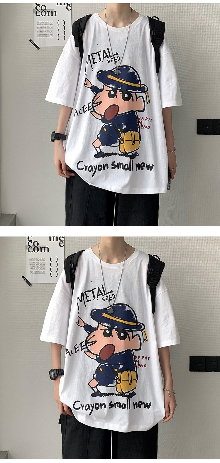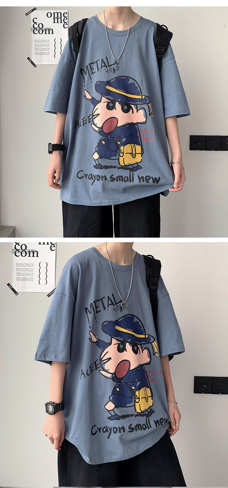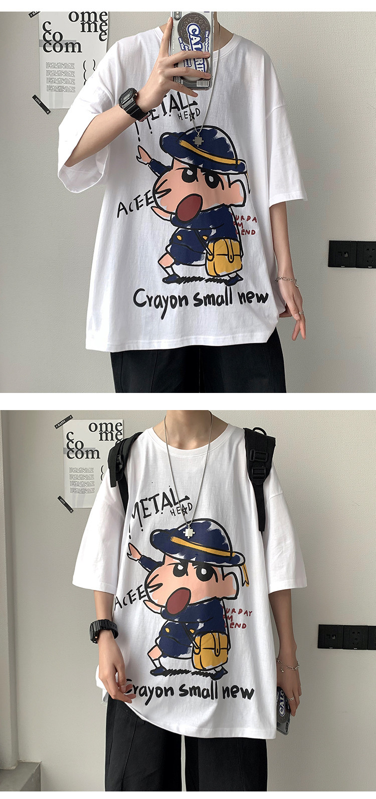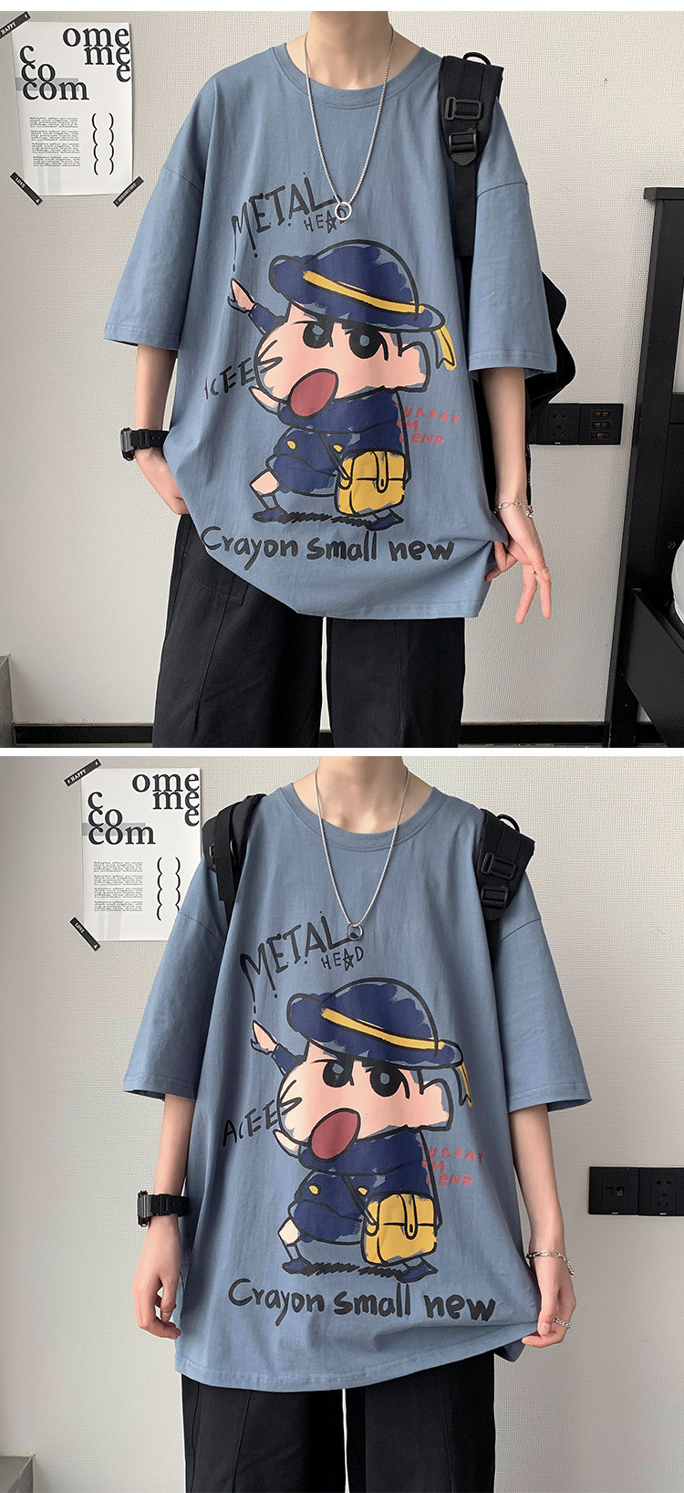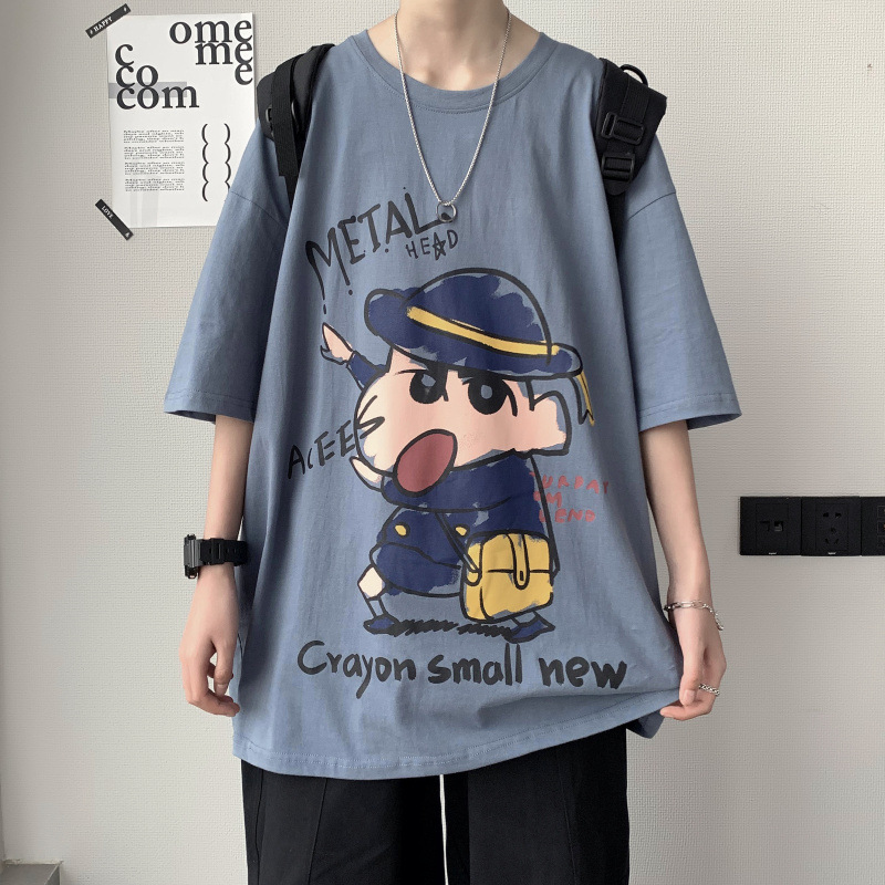여름 트렌디 브랜드 인즈 카툰 프린트 반팔 티셔츠 남성용 한국식 루즈 올매치 티셔츠 힙합 트렌디 반소매 티셔츠스토어 가기
