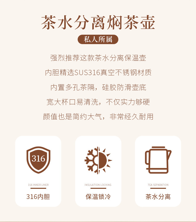 차 분리 답답한 주전자 316 스테인레스 스틸 열 냄비 대용량 800 ml 고급 선물 주전자 글자