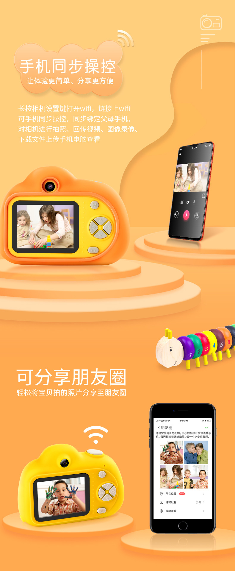 儿童相机数码迷你照相机玩具连接wifi高清前后双摄迷你录像摄影机