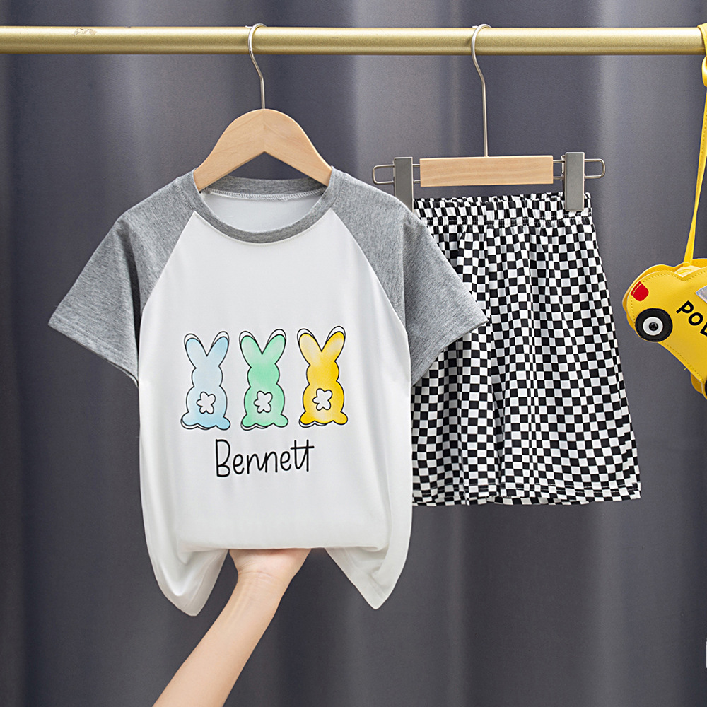 • BK 커튼 스타일 짧은 소매 세 토끼