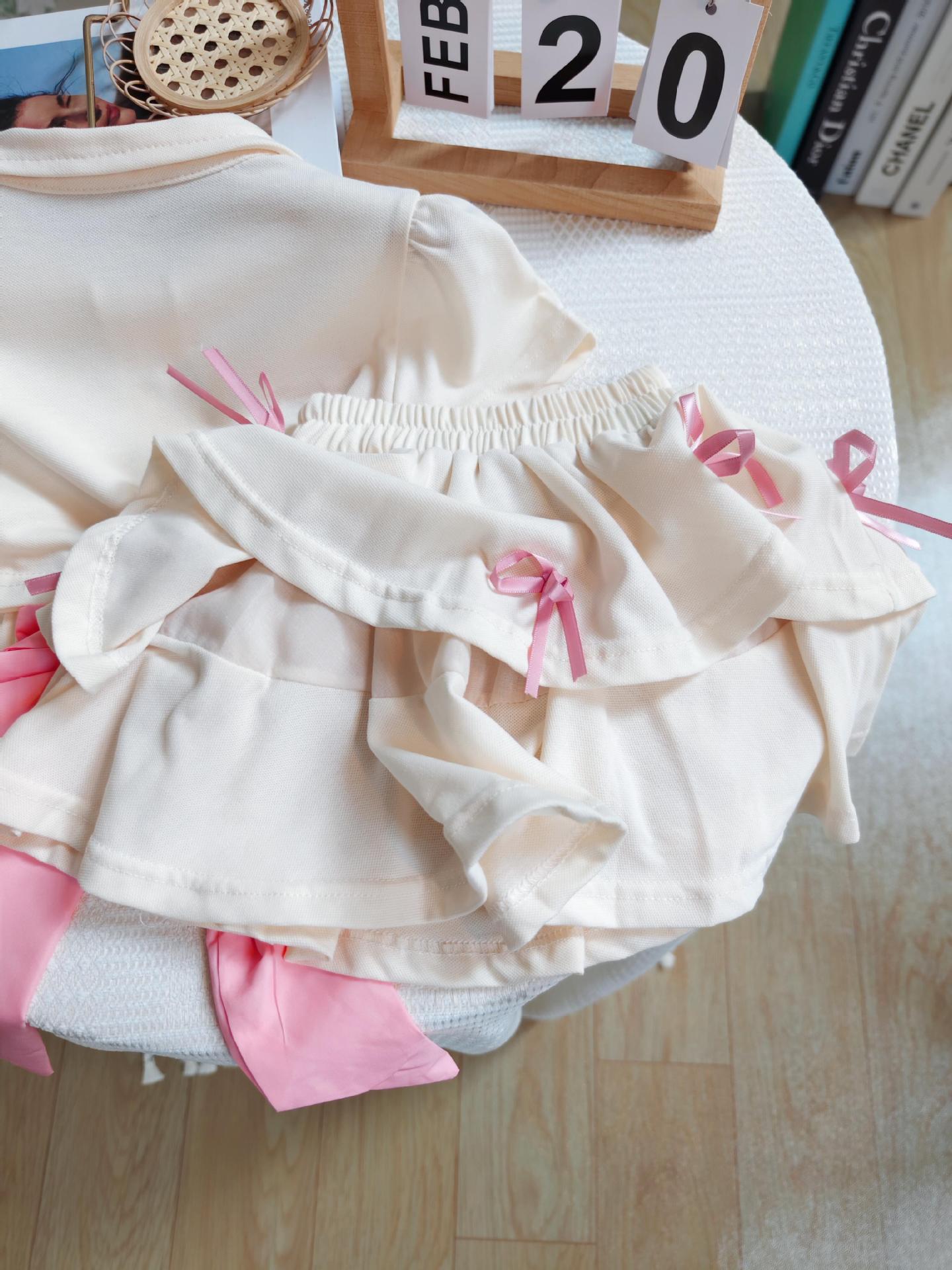 Ancorelala2025 여름 새 여자 옷 아기 소녀 귀여운 활 폴로 셔츠와 스커트 정장스토어 가기