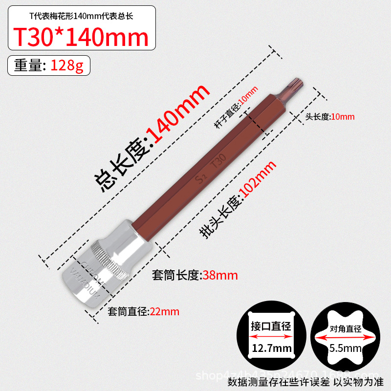 육각형 슬리브 헤드 압력 배치 길이 T 형 배치 헤드 스크루 드라이버 매화 1/2 대형 플라잉 슬리브 200mm140 엑스트라 롱 배치 헤드