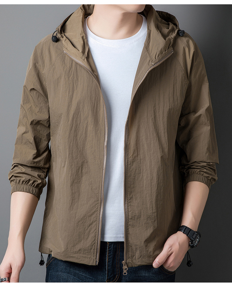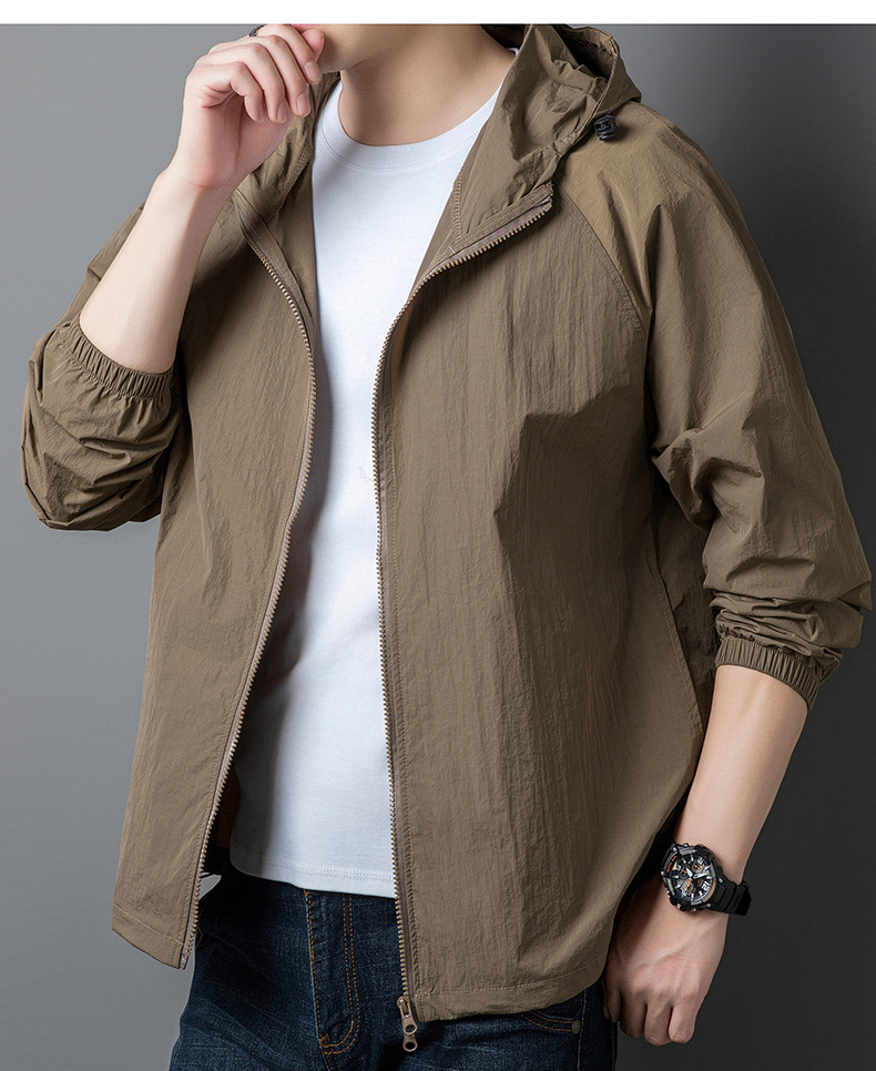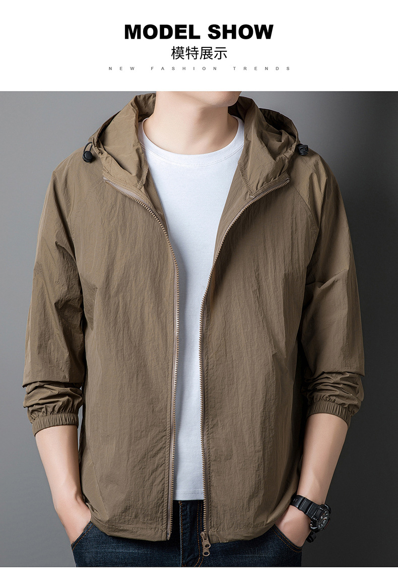 2024 봄과 여름 새로운 남성 패션 캐주얼 야외 경량 태양 보호 3 방지 후드 재킷 남성 코트 패션스토어 가기