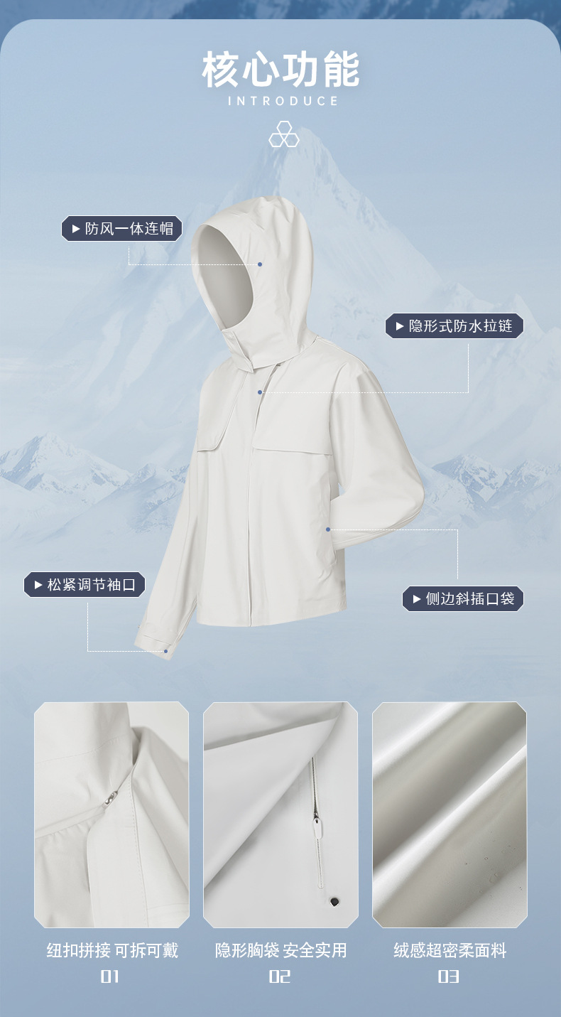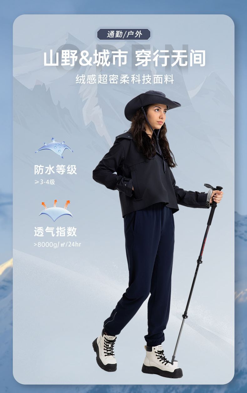 삼투심 SBS 지퍼 탈착식 버클 후드 통근 자켓 여성 야외 레저 캠핑 하이킹 세트