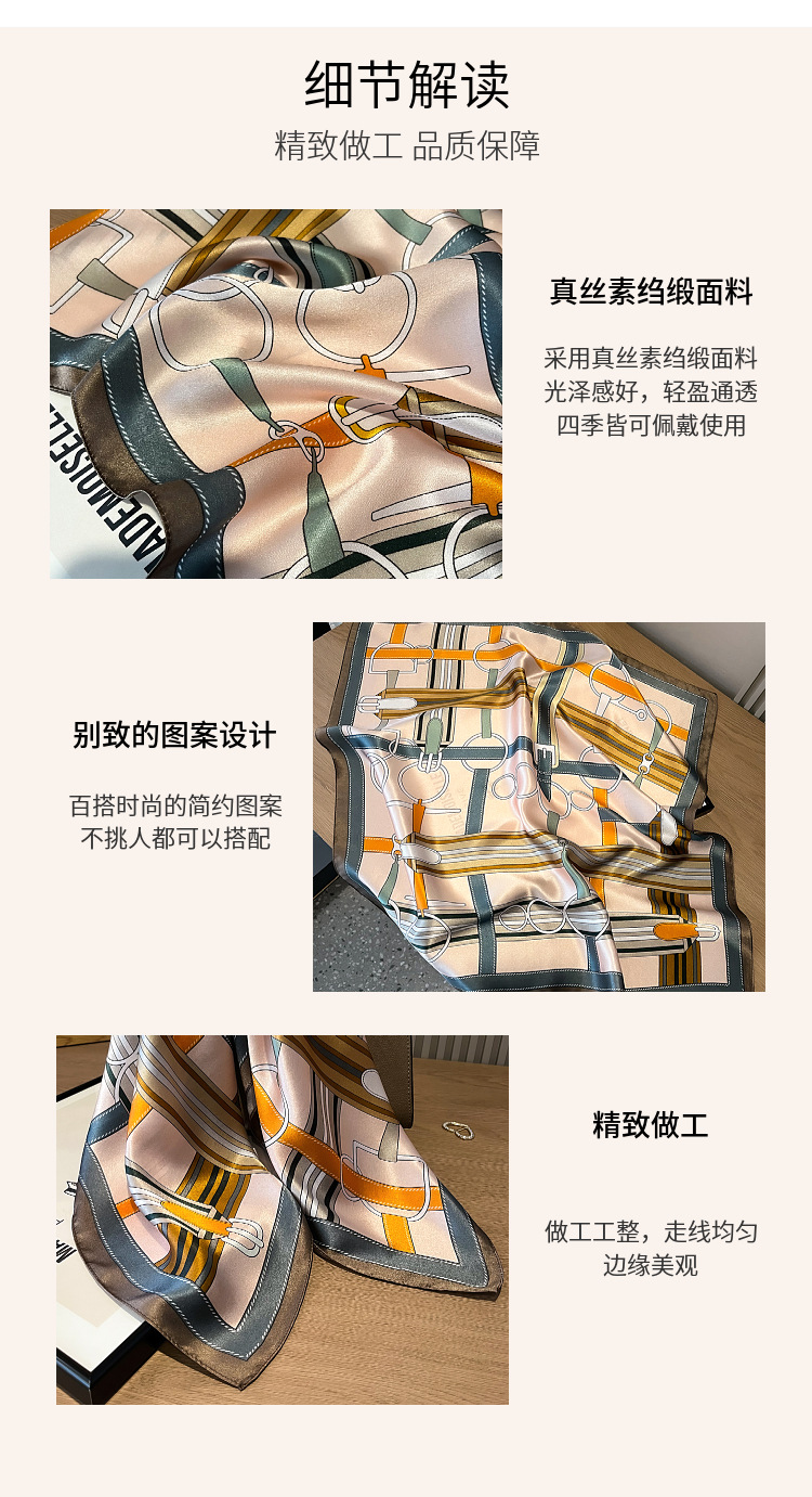 항주 실크 100% 뽕나무 실크 스카프 여성의 봄 다목적 체인 인쇄 실크 스카프 장식 실크 스퀘어 스카프
