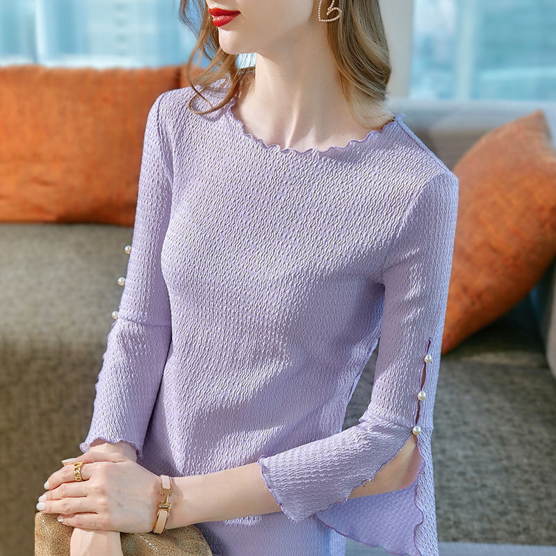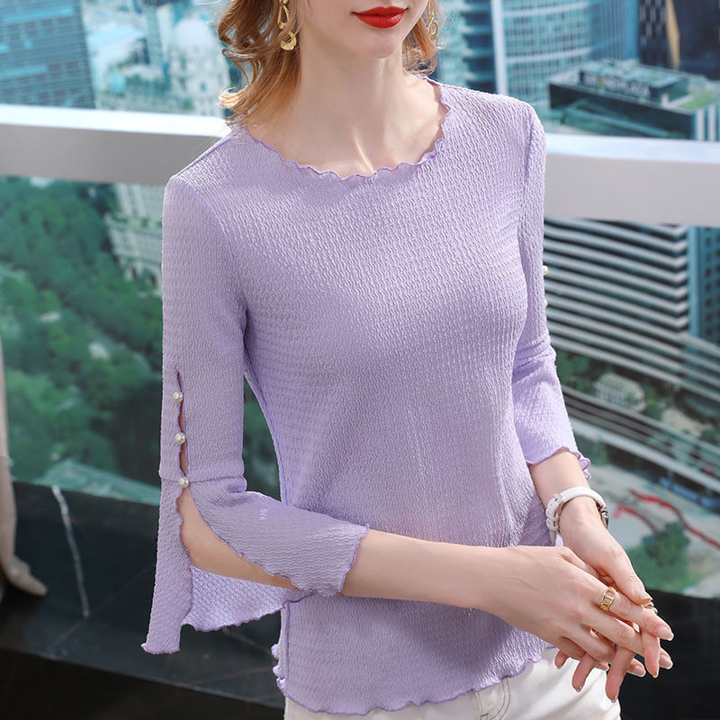 2023 봄 새로운 여성 주름 소매 쉬폰 셔츠 세련된 디자인 슬리밍 3/4 소매 최고 세련된 작은 셔츠
