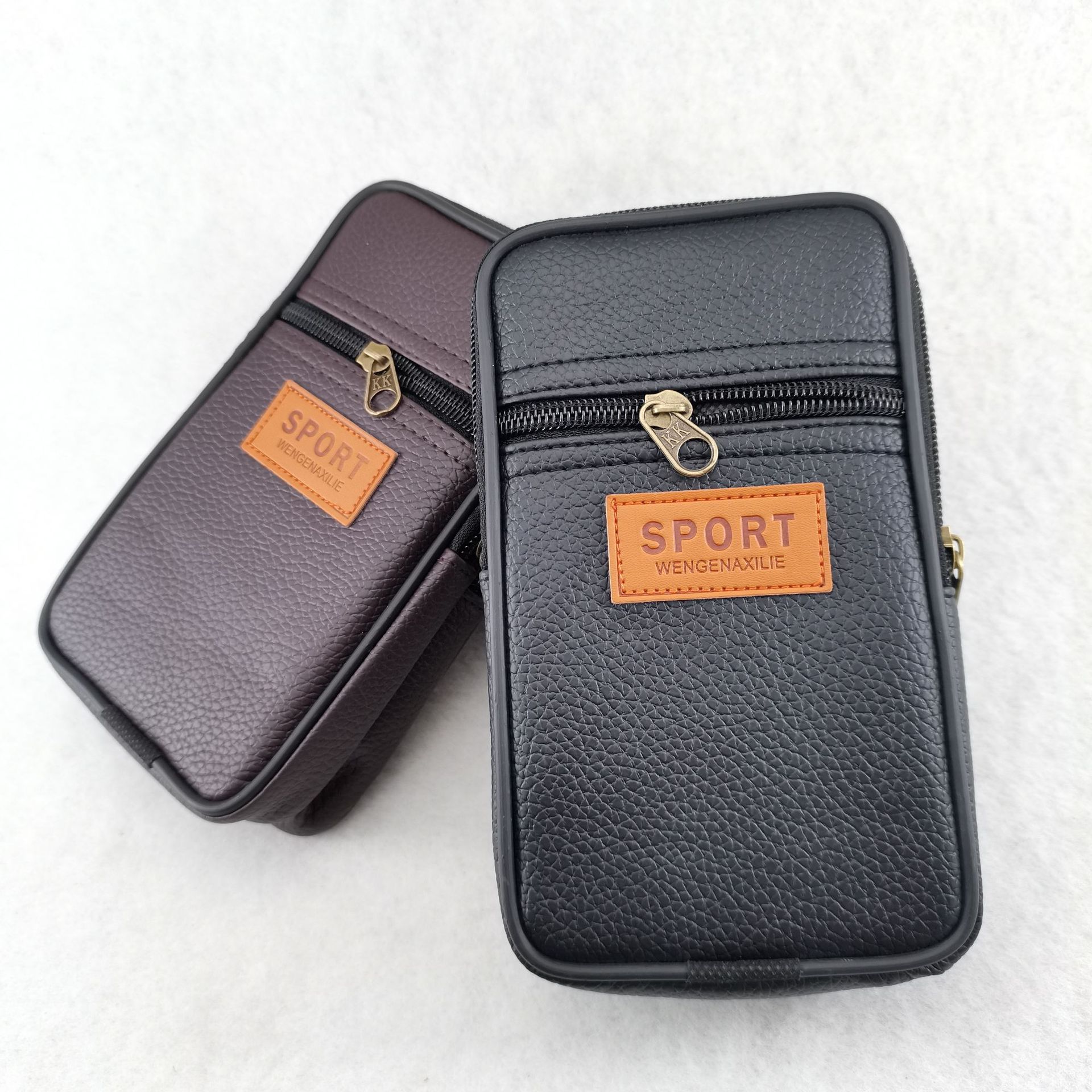 品名:加大皮革三拉PU手机腰包