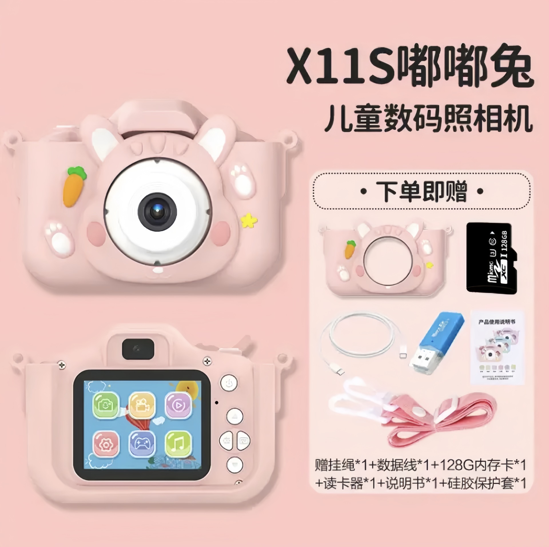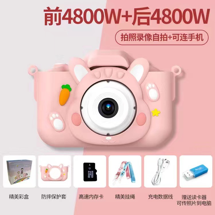 • (낙서 토끼 핑크) HD 듀얼 카메라 (64G 메모리 카드)