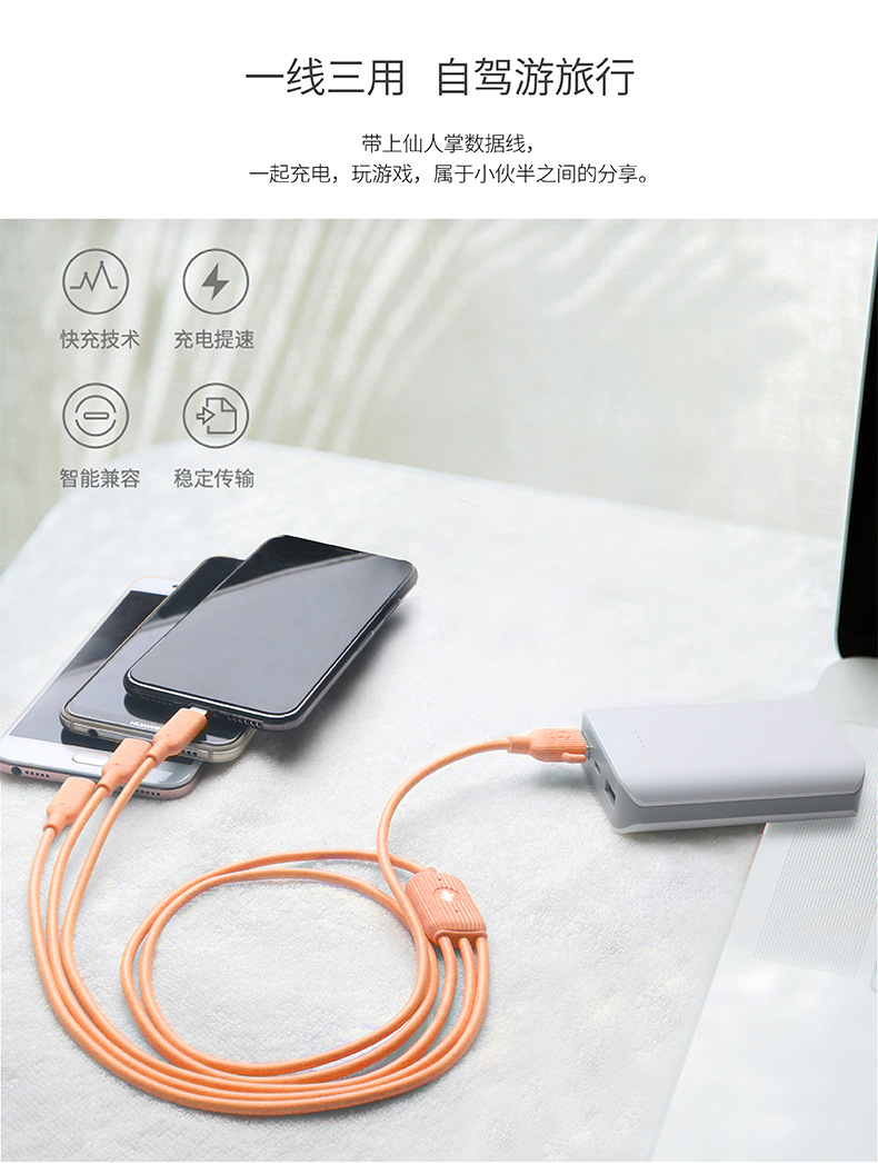 애플 화웨이 안드로이드 유니버설에 적합한 1 대 3 슈퍼 고속 충전 데이터 케이블 발광 3 대 1 충전 케이블