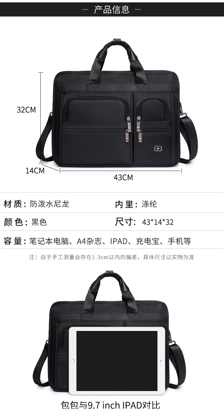 스위스 컴퓨터 가방 남성용 16인치 서류 가방 도구 가방 대용량 숄더백 남성용 가방 핸드백 출장 여행 가방스토어 가기