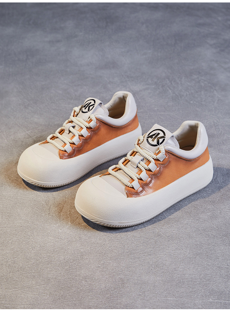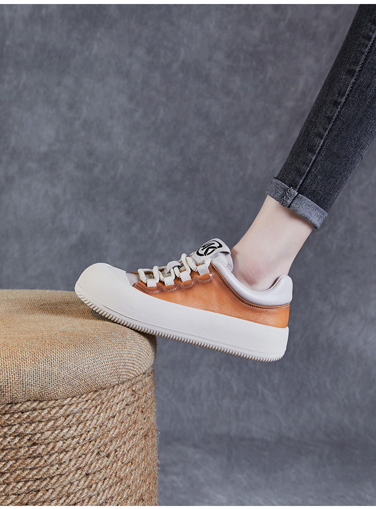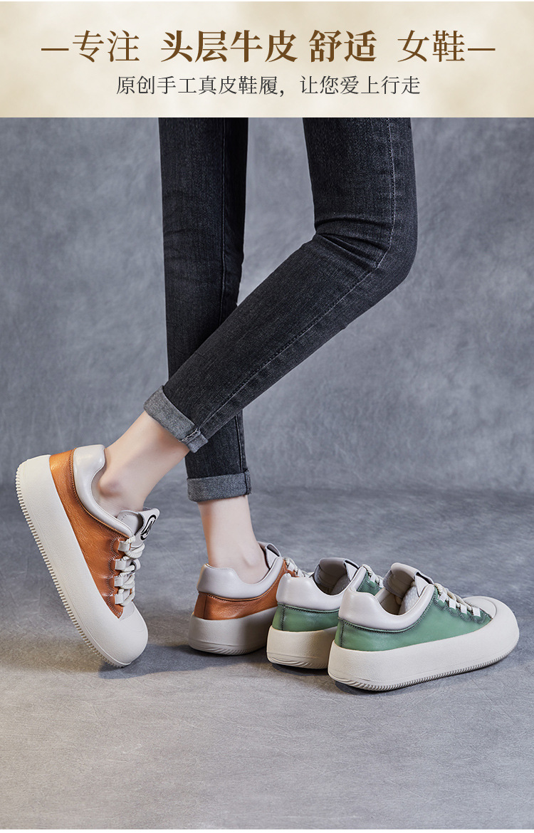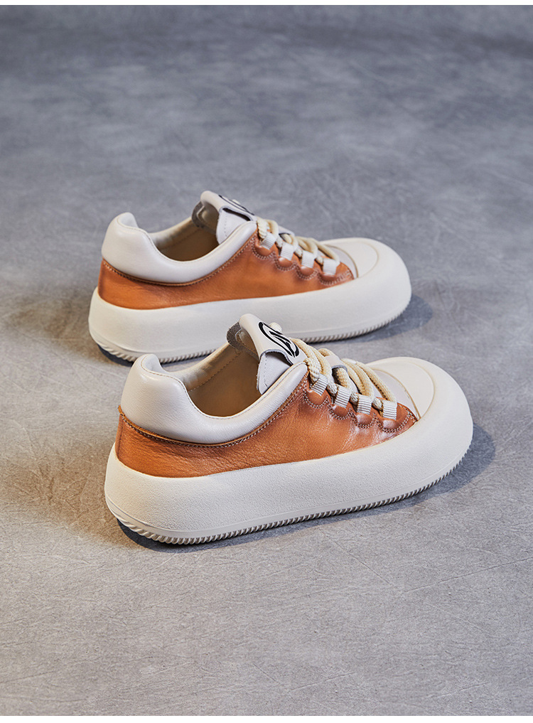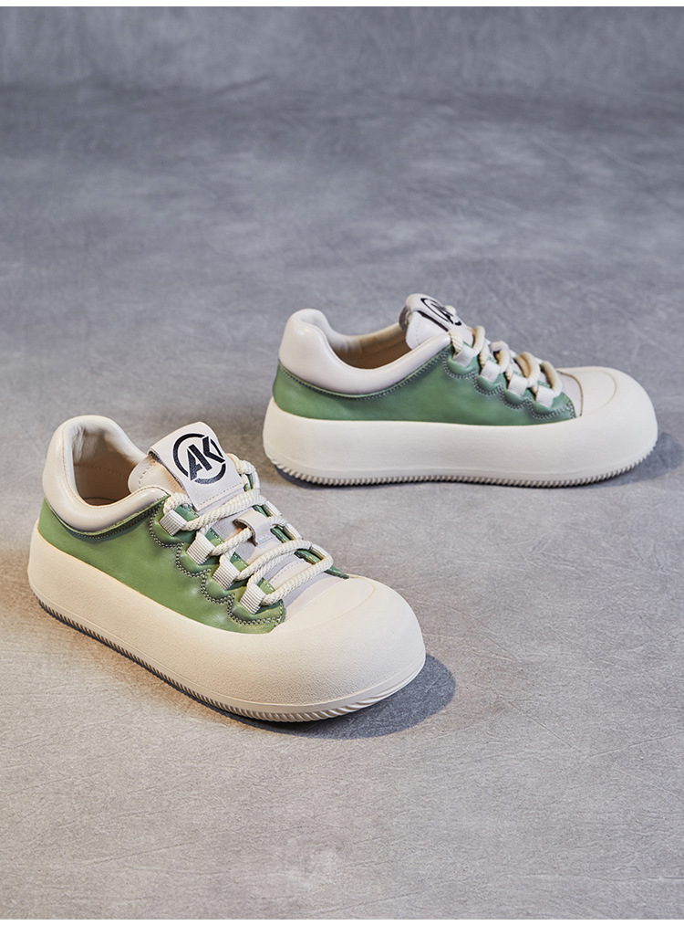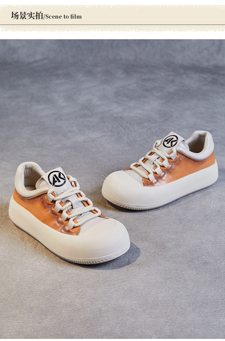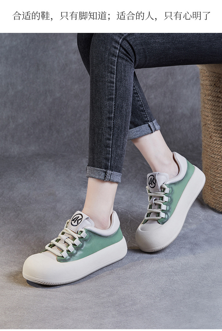 정품 가죽 수제 여성 신발 2024 새로운 봄 캐주얼 플랫폼 신발 추악한 귀여운 큰 발가락 신발 귀여운 레이스 업 라운드 토스토어 가기