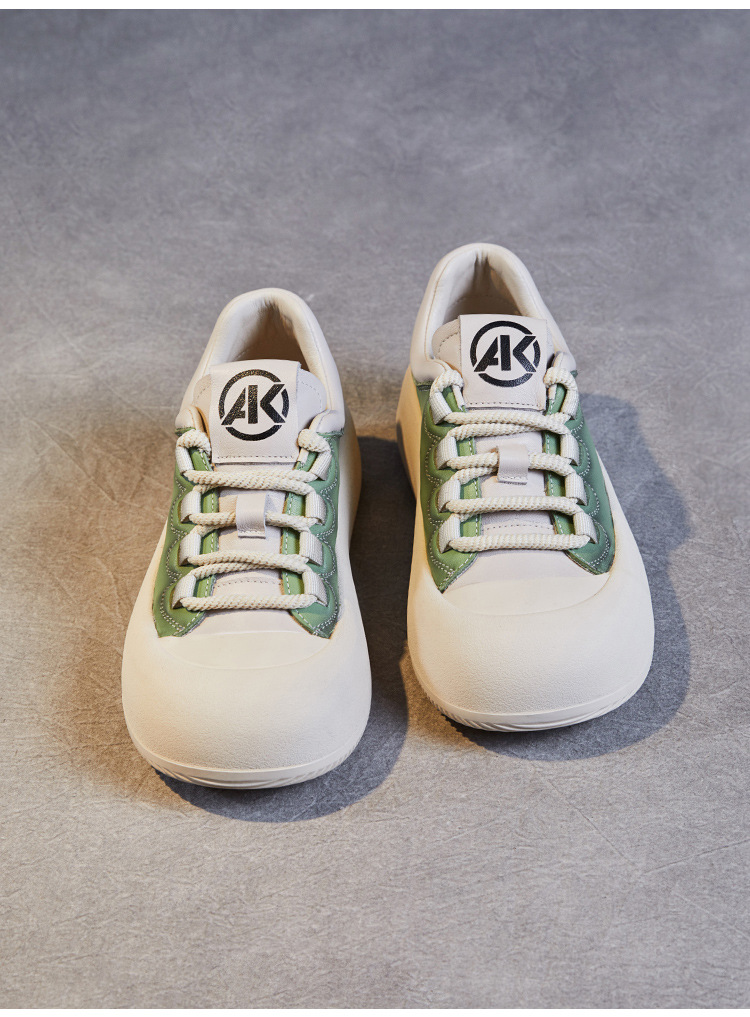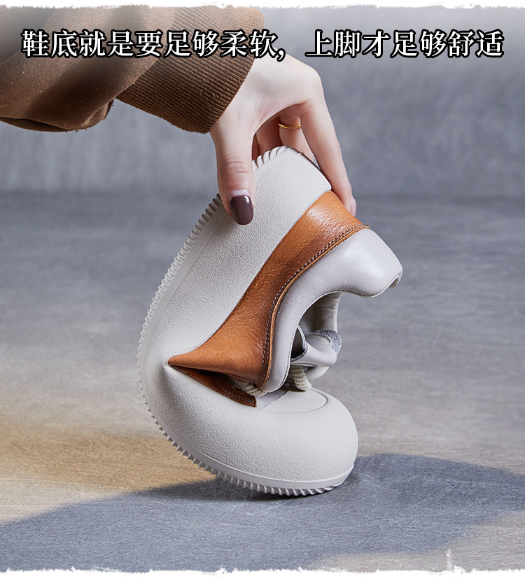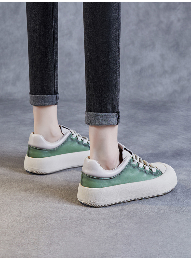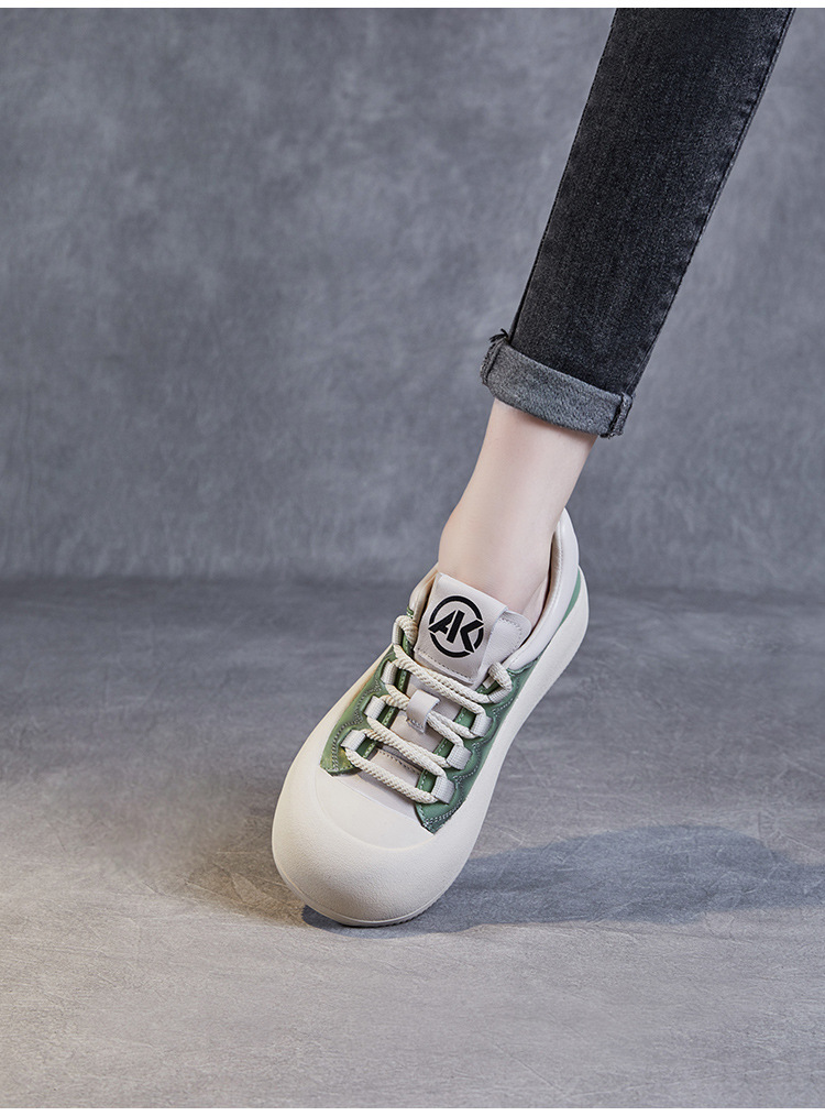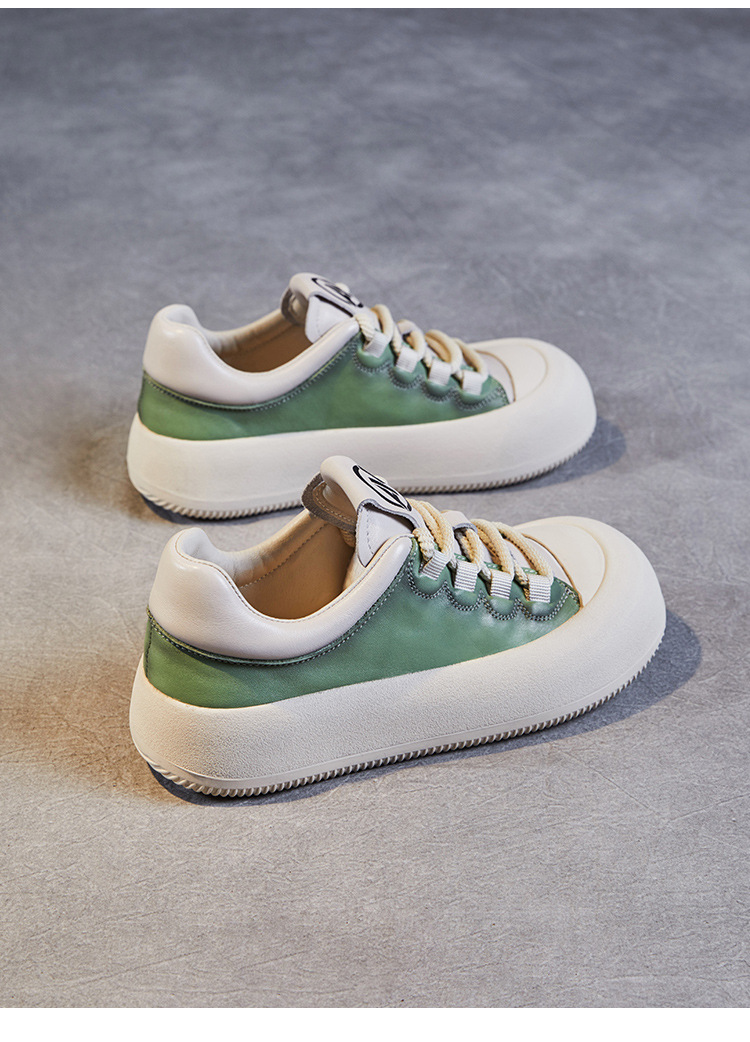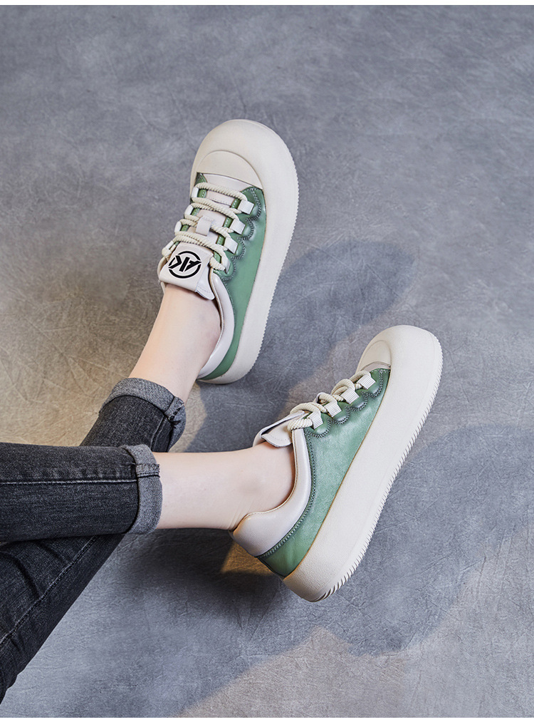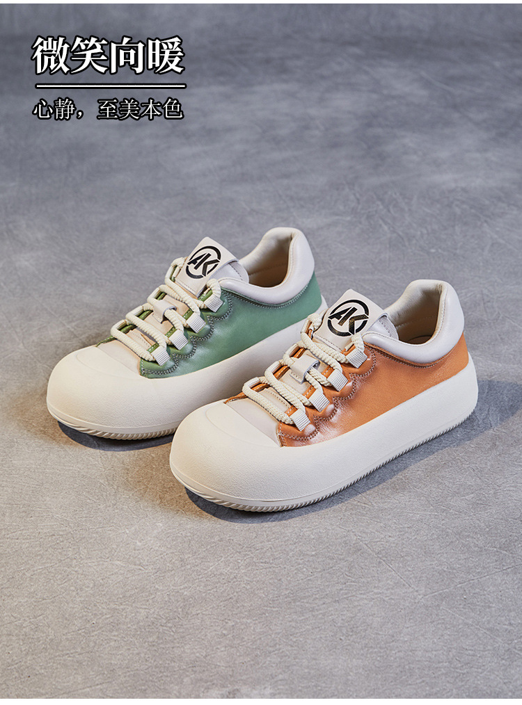 정품 가죽 수제 여성 신발 2024 새로운 봄 캐주얼 플랫폼 신발 추악한 귀여운 큰 발가락 신발 귀여운 레이스 업 라운드 토스토어 가기