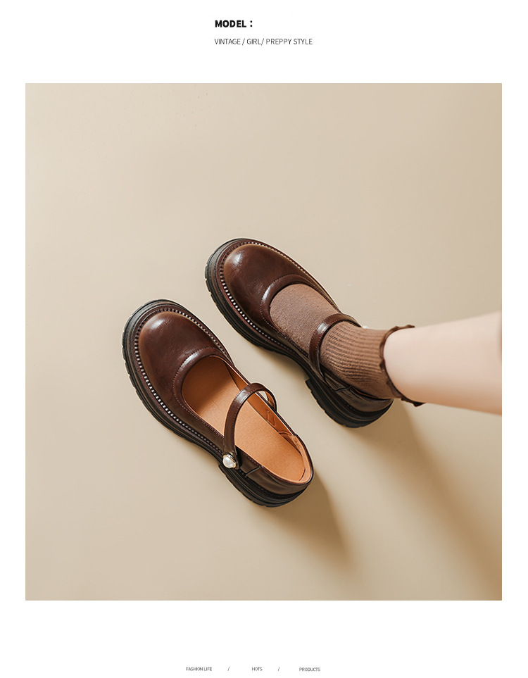레트로 영국 로우 컷 가죽 신발 여성 봄과 여름 새로운 라운드 토 버클 JK 올 매치 일본 메리 제인 신발스토어 가기