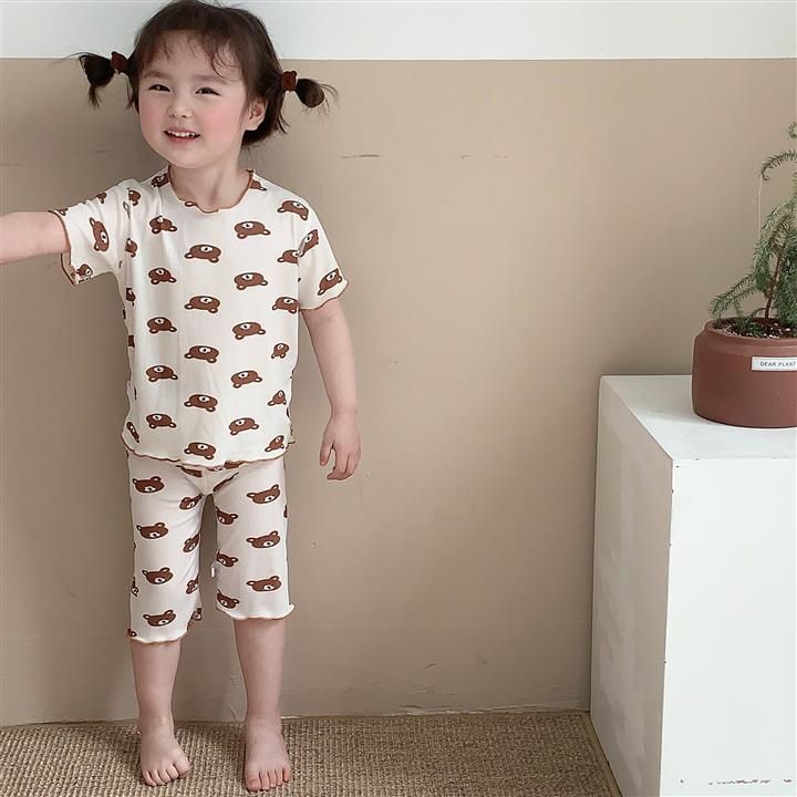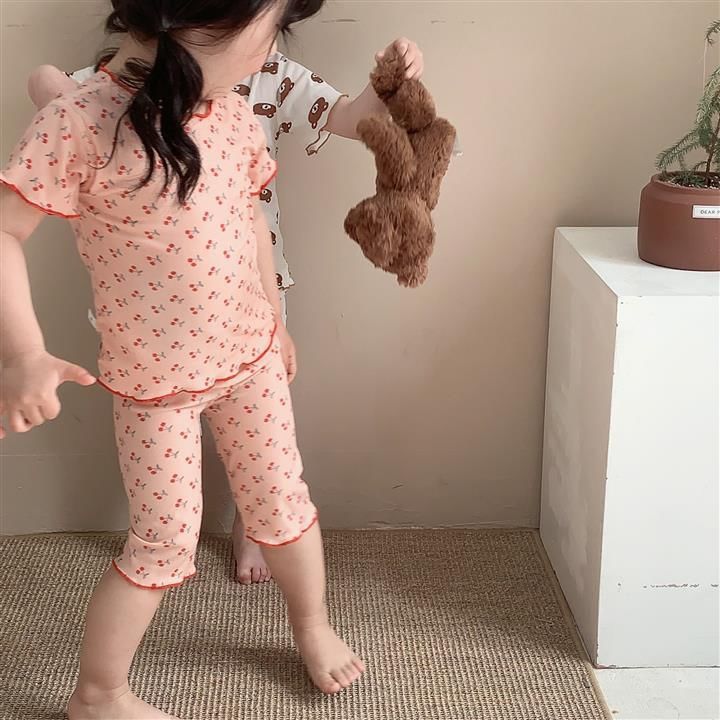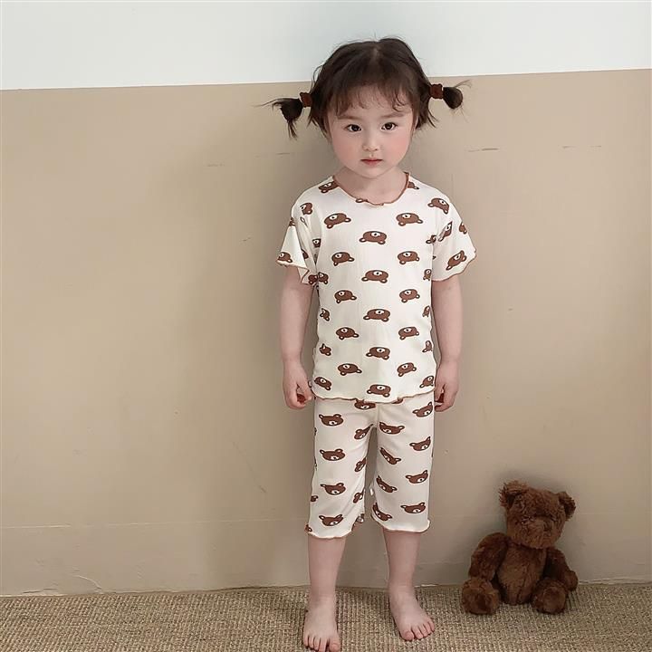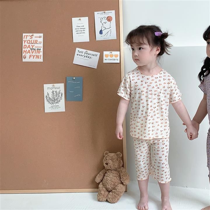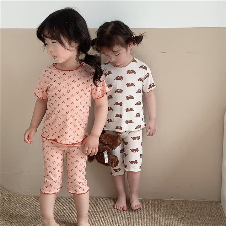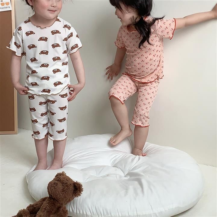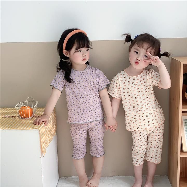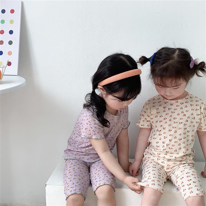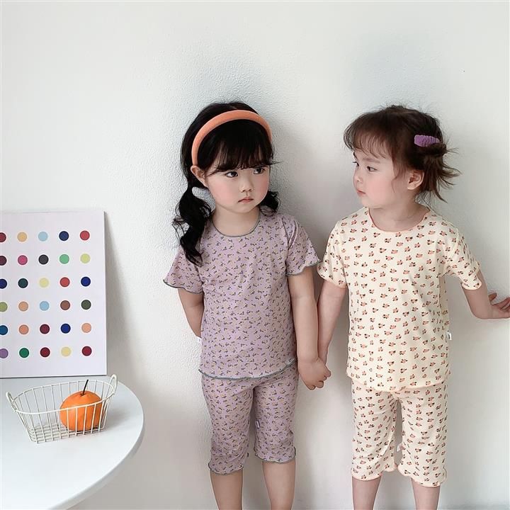 어린이 잠옷 여름 아이스 실크 얇은 세트 소녀 홈 옷 꽃 달콤한 짧은 소매 2 피스 공장 도매스토어 가기