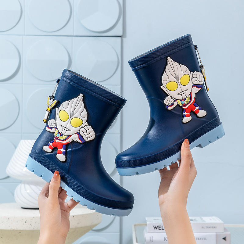 울트라 맨 어린이 장화 장화 물 신발 중형 및 대형 어린이 dijiasello 귀여운 미끄럼 방지 두꺼운 바닥 사계절 방수 오버 슈즈