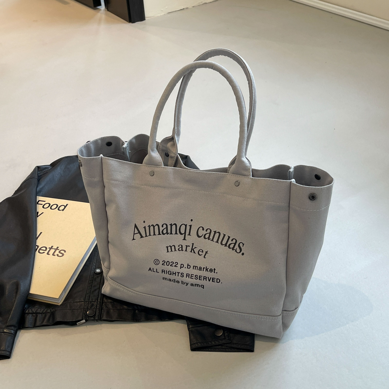 원래 수제 일본식 두꺼운 캔버스 영어 토트 다목적 예술 학생 통근 휴대용 대용량 핸드백스토어 가기