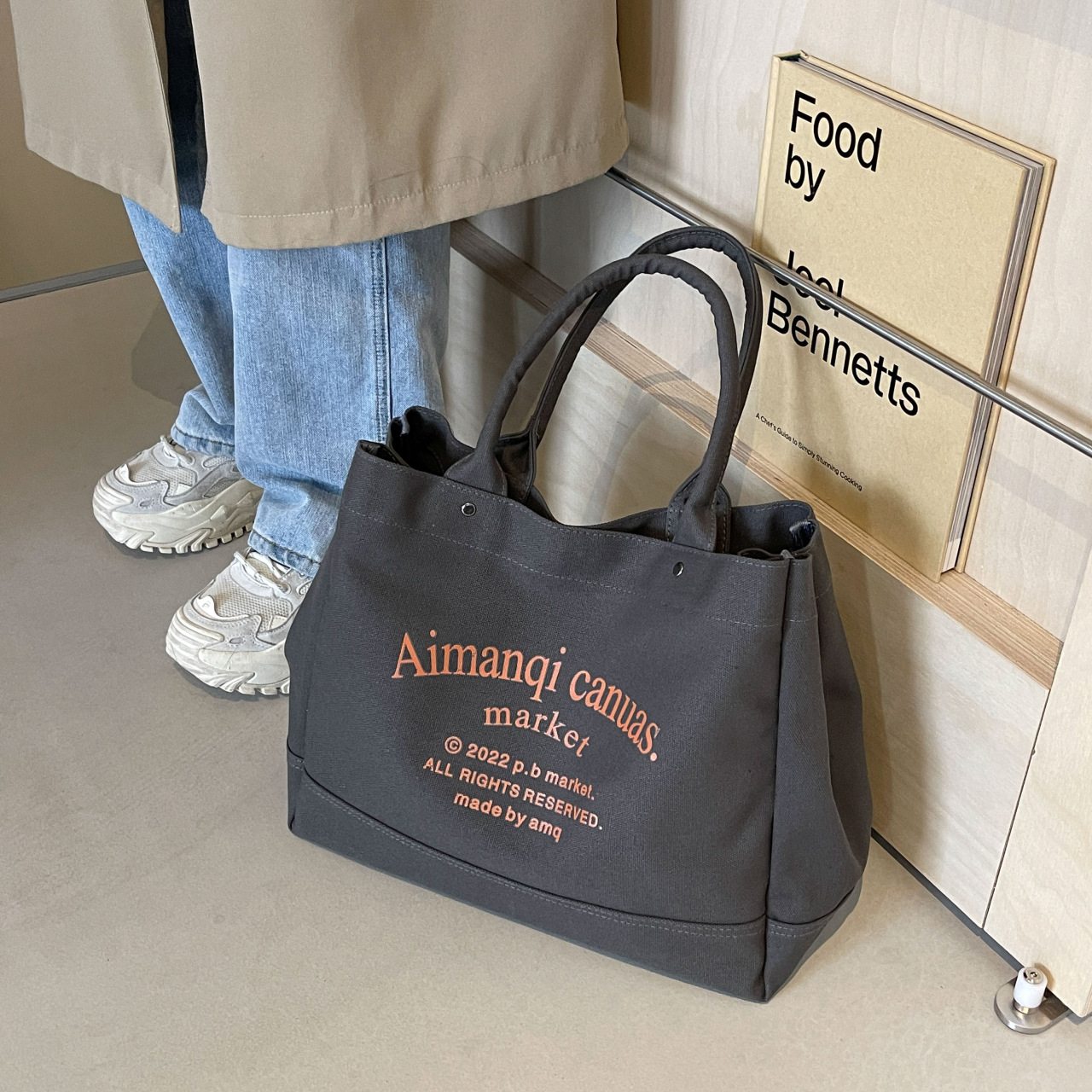 원래 수제 일본식 두꺼운 캔버스 영어 토트 다목적 예술 학생 통근 휴대용 대용량 핸드백