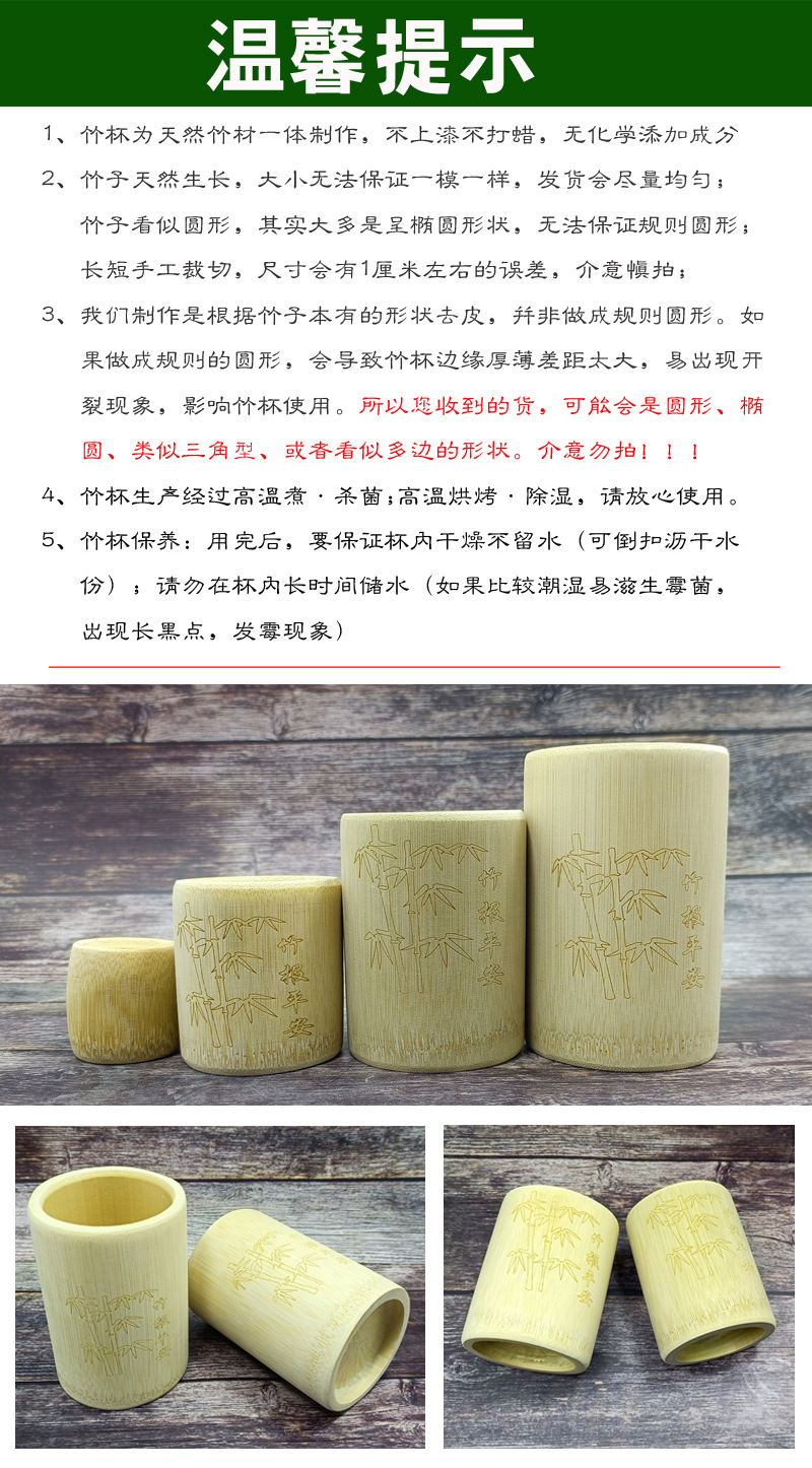 • 높이가 10cm 인 대나무 컵 6 개