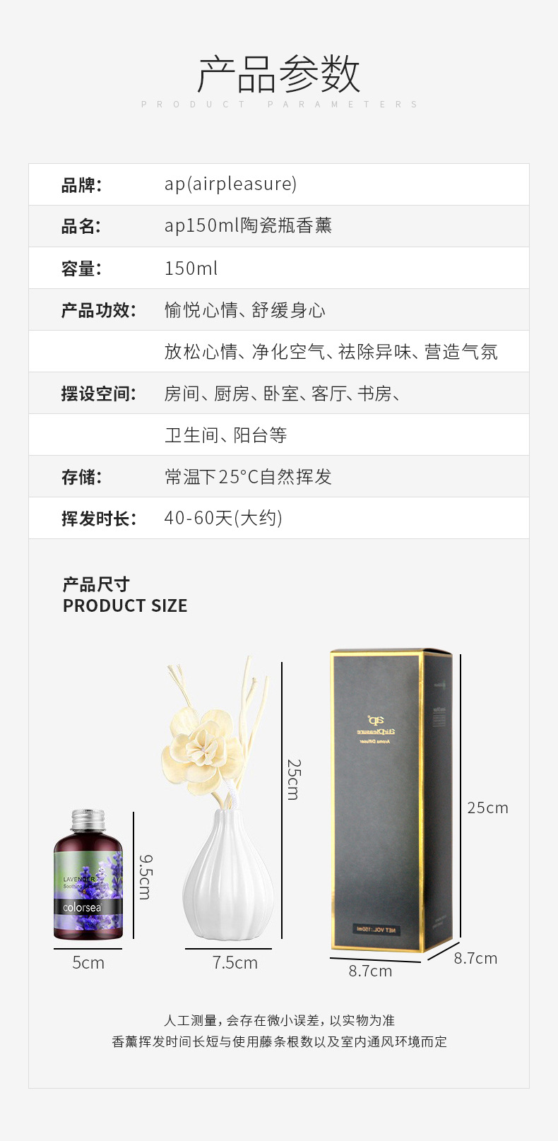 Ap150ml 욕실 아로마 테라피 장식 가정용 침실 방 화장실 공기 청정기 말린 꽃 아로마 테라피 영생스토어 가기