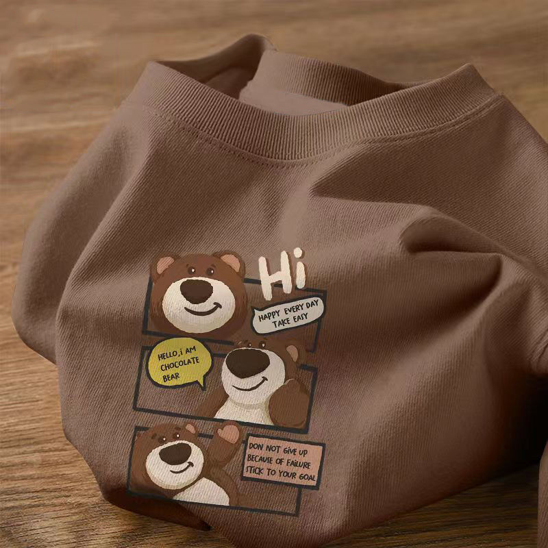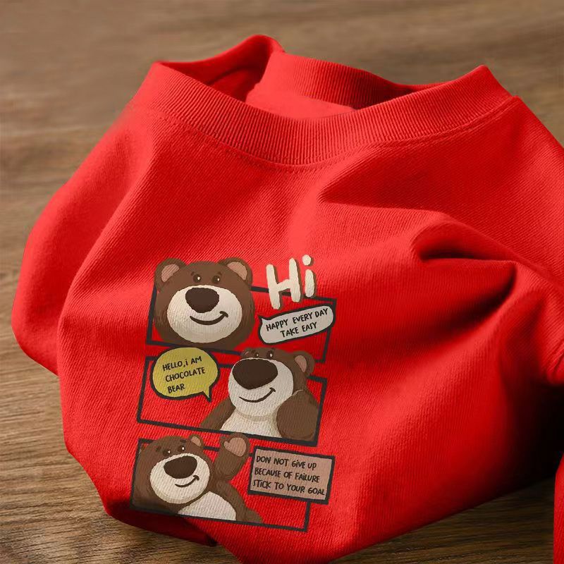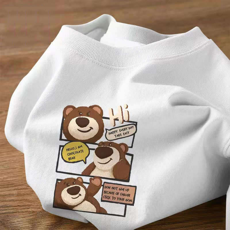 순면 남아용 반팔 여름 한국 스타일 아동용 루즈핏 중소형 아동용 만화풍 프린트 반팔 티셔츠 수분 흡수 및 땀 배출 기능