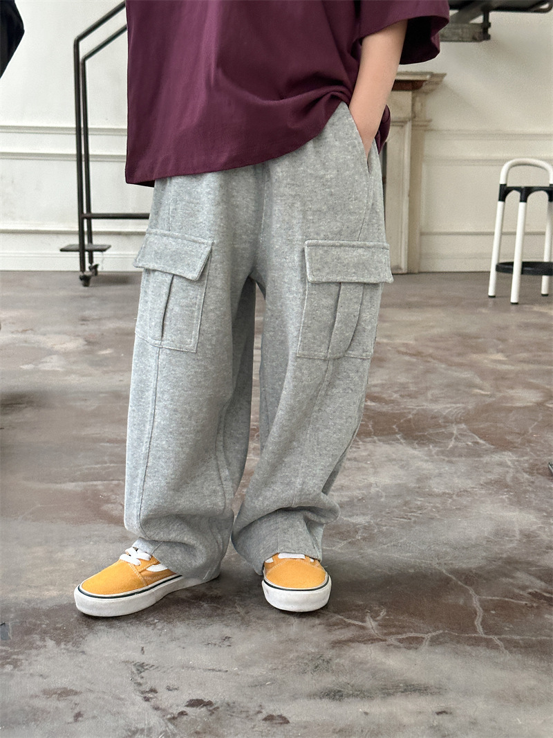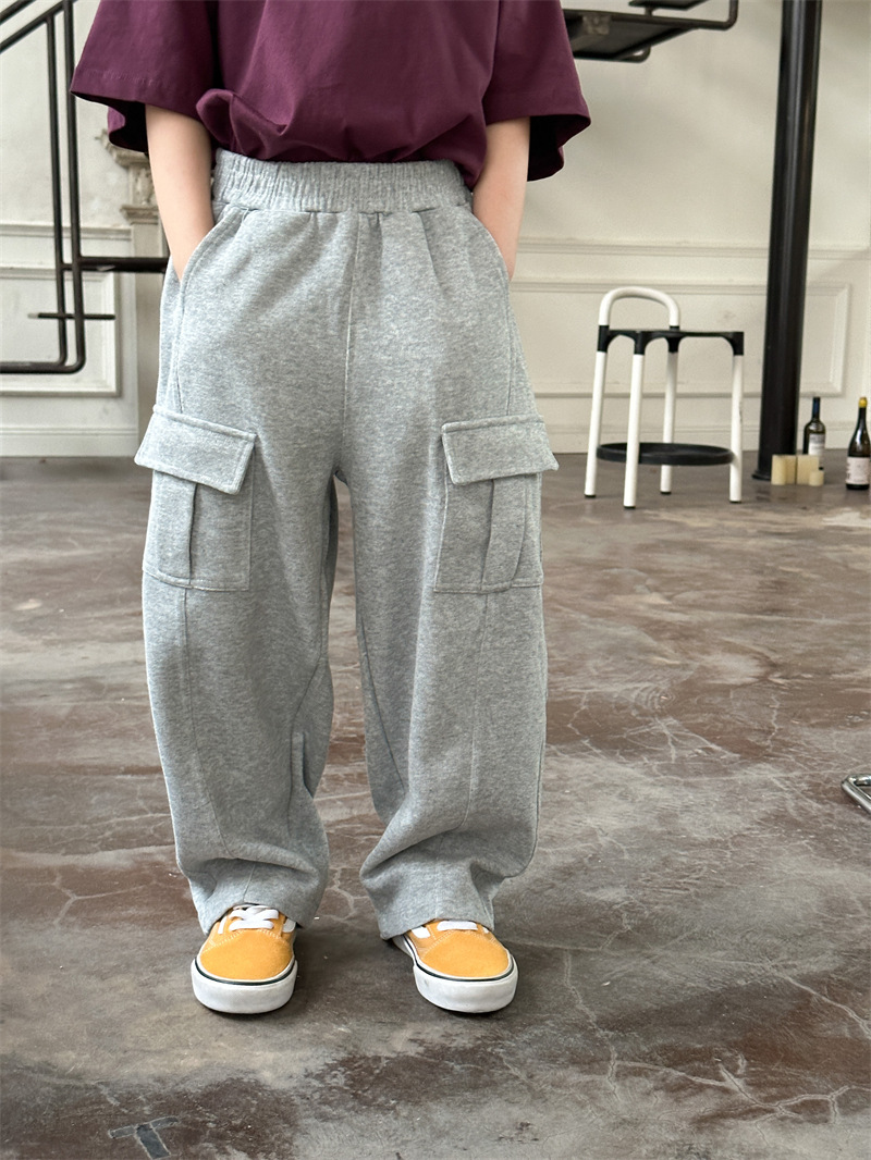 2025 가을 신상 아동 니트 스웨트팬츠 한국 스타일 남녀 공용 캐주얼 바지 다용도 포켓 스포츠 팬츠 트렌디