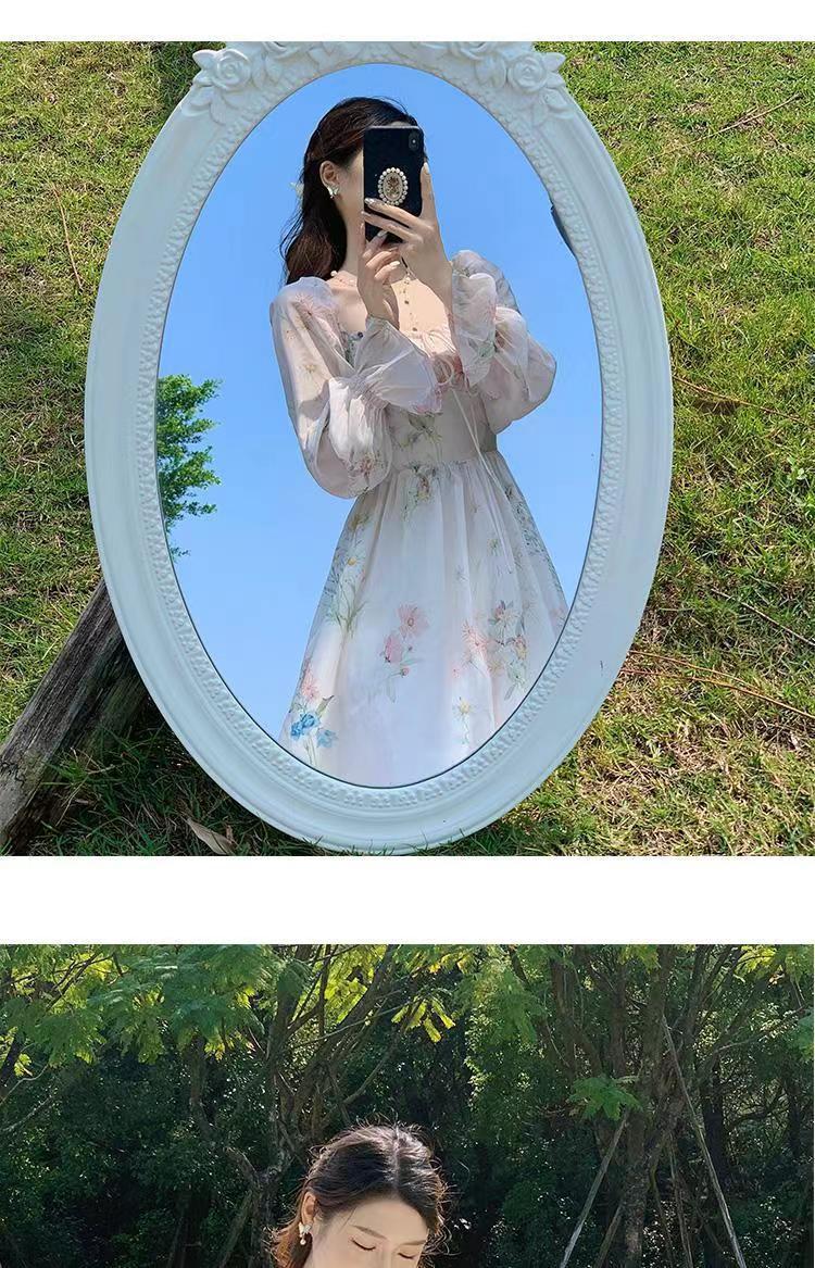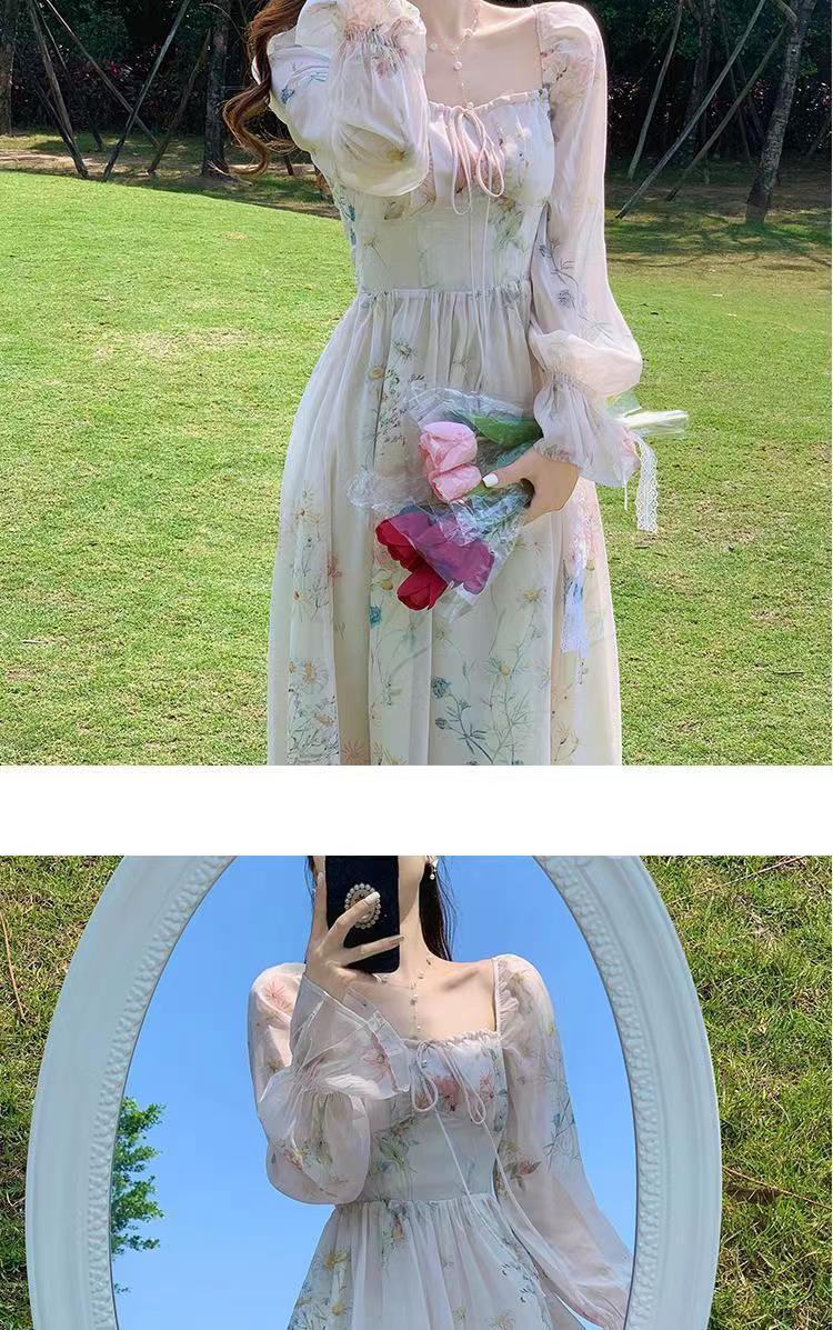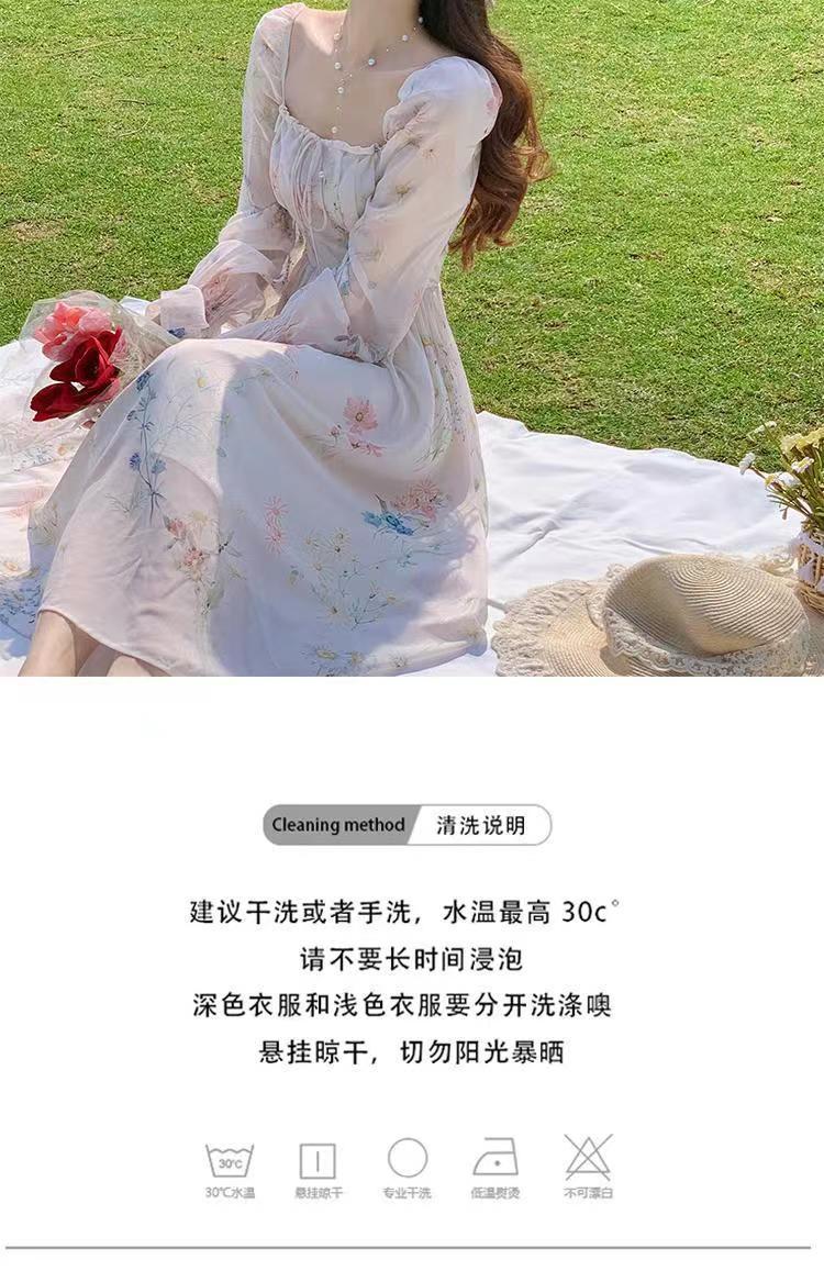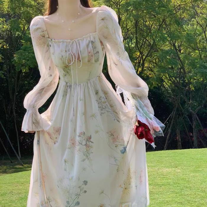 쉬폰 꽃 긴 소매 원피스 여성의 2024 봄과 여름 새로운 달콤한 모리 프랑스 첫사랑 부드러운 긴 원피스
