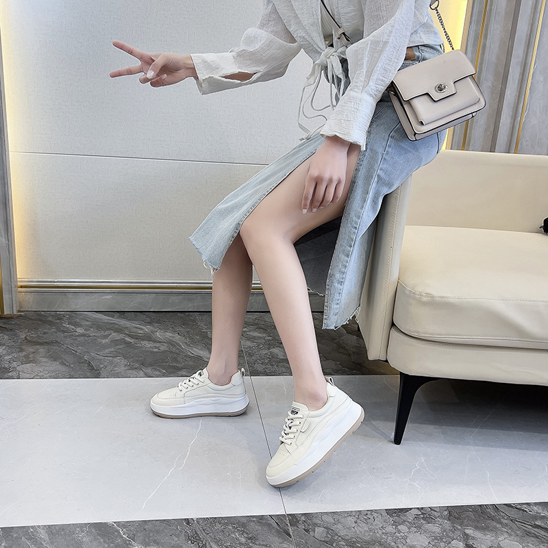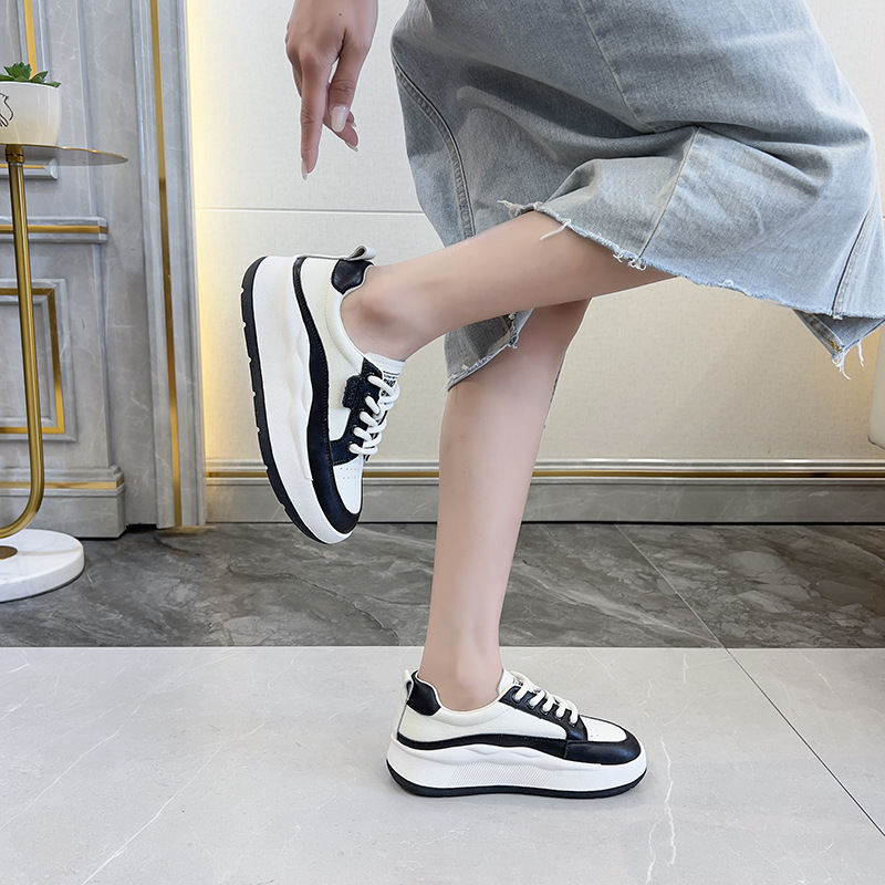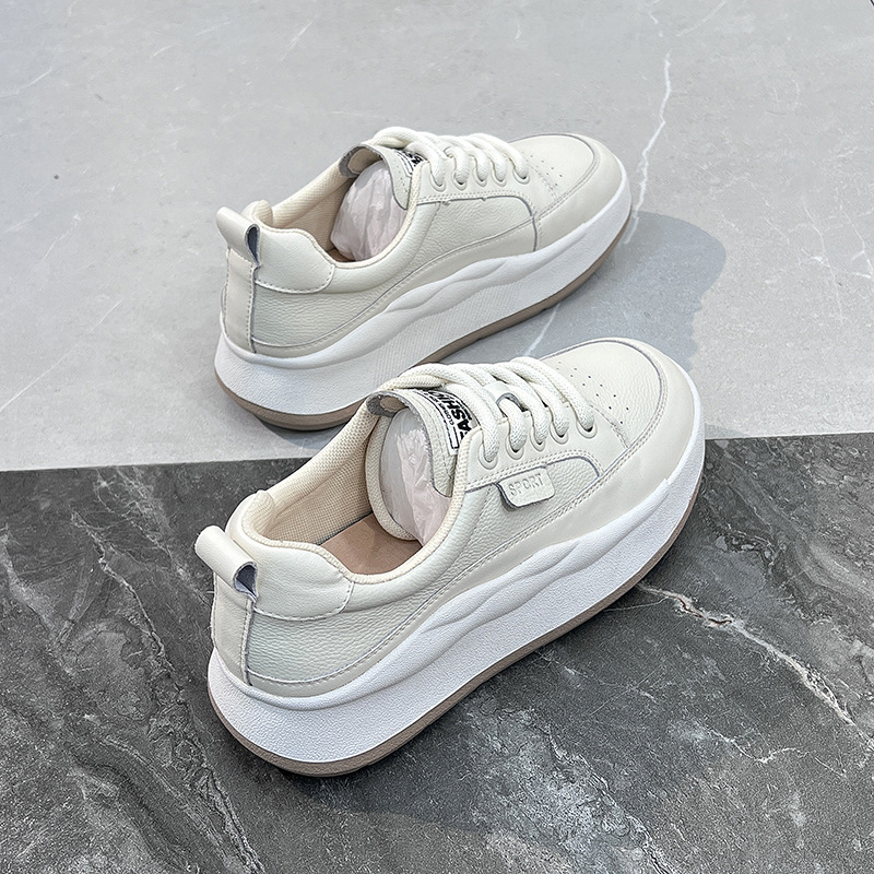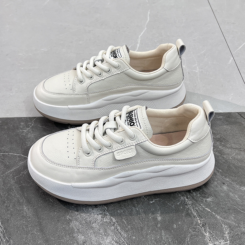 1층 소가죽 스포츠 캐주얼 신발 여성용 2025년 신상 사계절 신발 한국 스타일 다용도 레트로 두꺼운 밑창 학생 운동화