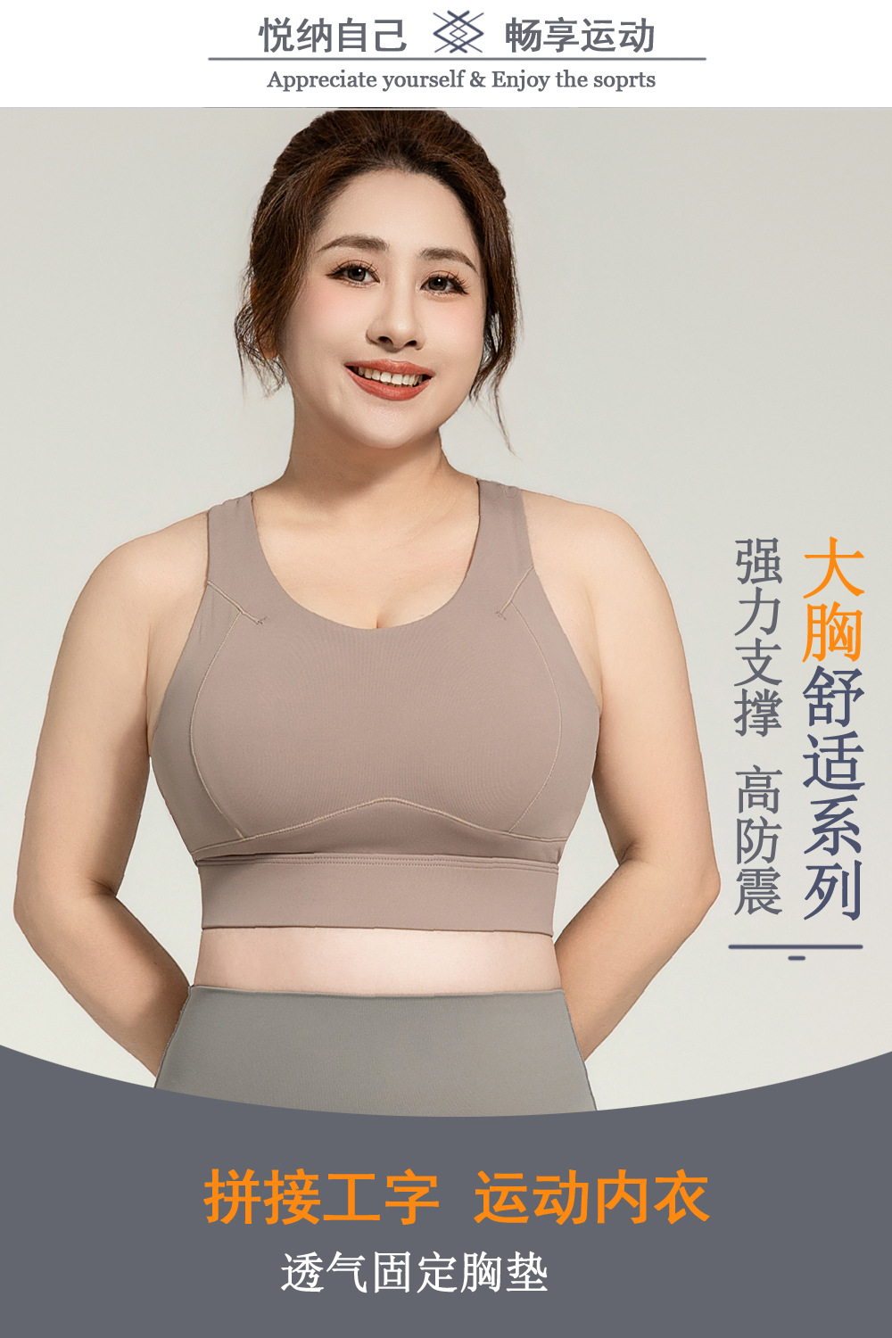 새로운 스타일의 큰 가슴을 작아 보이게 하는 스포츠 브라, 고강도 충격 방지 트레이닝 조끼, 일체형 I자형 등 라인이 아름다운 피트니스 브라스토어 가기