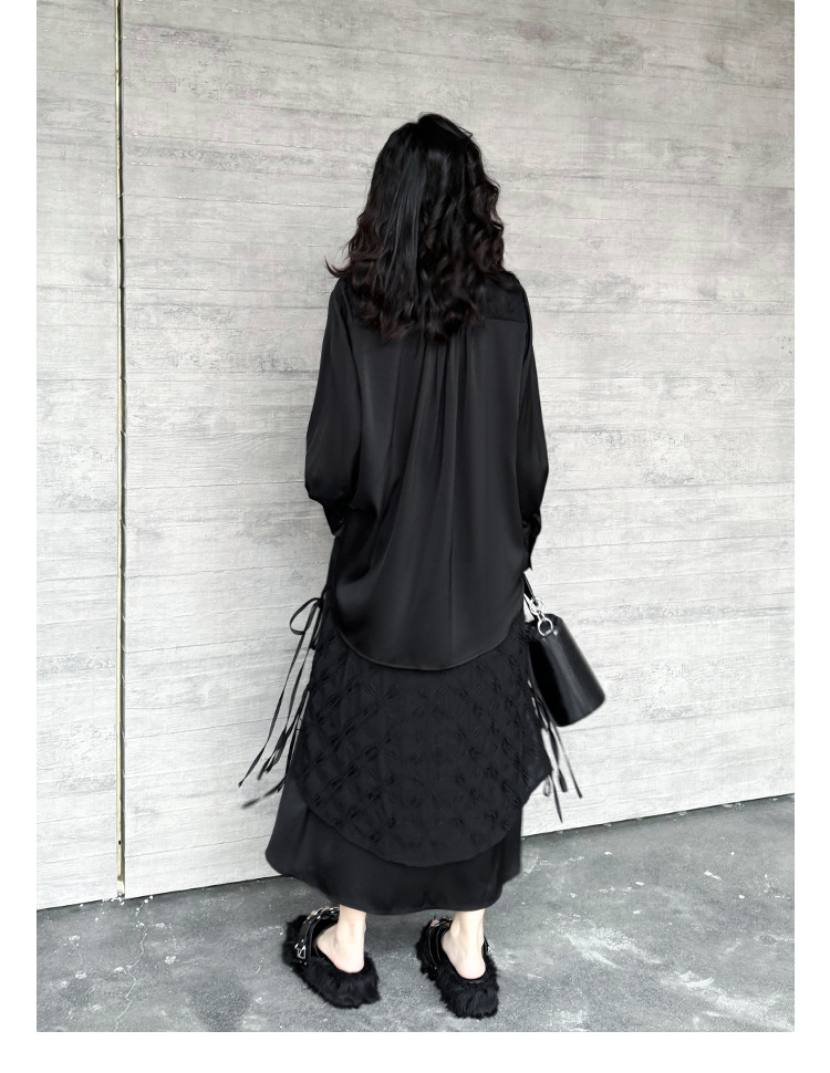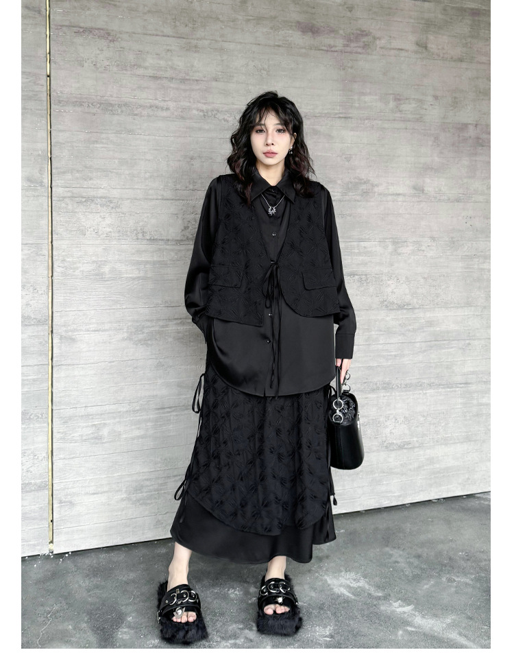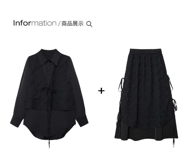 새로운 중국 스타일 패션 캐주얼 투피스 세트 여성을위한 봄과 가을 새로운 느슨한 스티칭 긴 소매 셔츠 높은 허리 스커트스토어 가기
