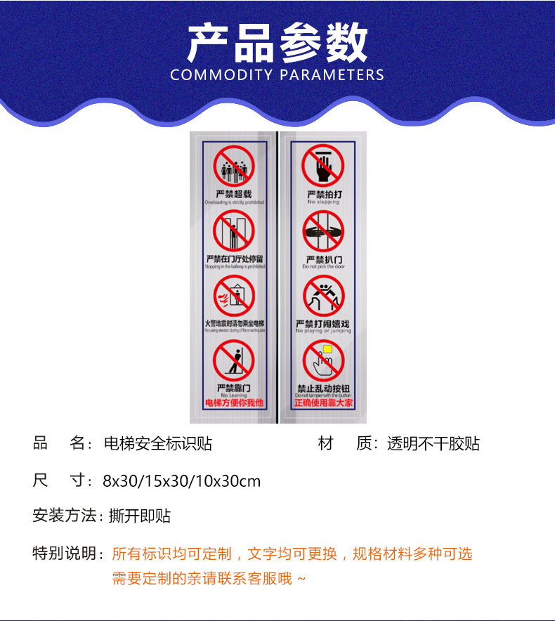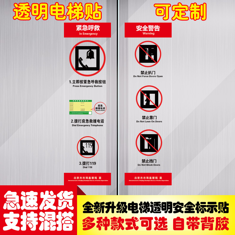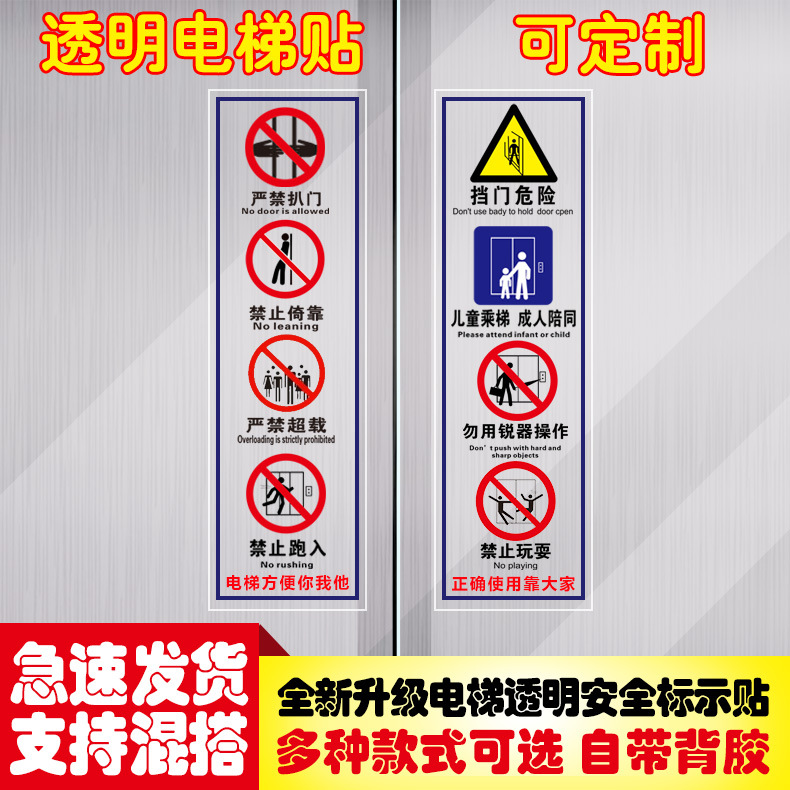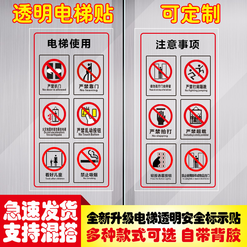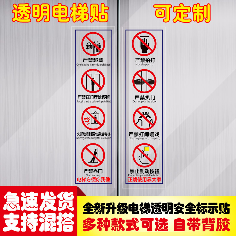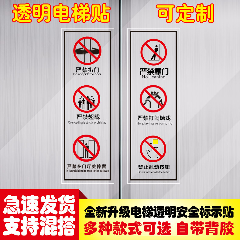 엘리베이터 안전 식별 스티커 투명 PVC 라벨 경고 스티커 주거 재산 더블 도어 엘리베이터 내부 안전 식별스토어 가기