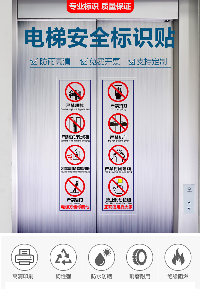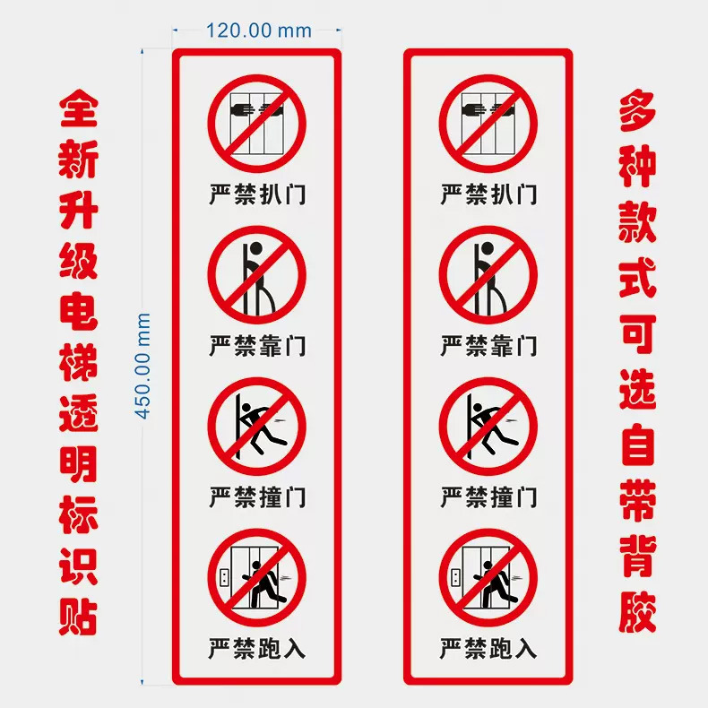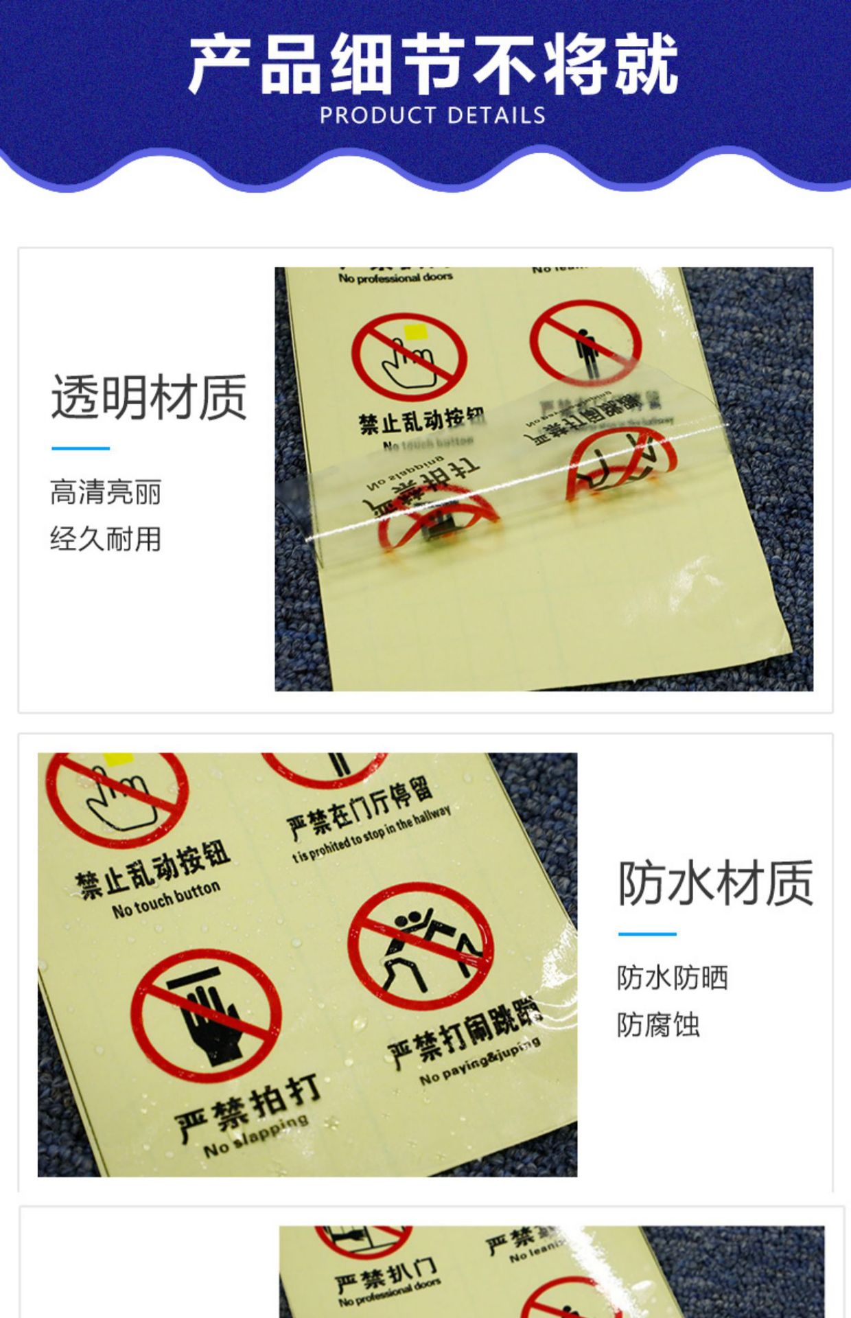 엘리베이터 안전 식별 스티커 투명 PVC 라벨 경고 스티커 주거 재산 더블 도어 엘리베이터 내부 안전 식별