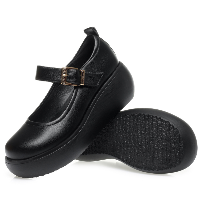세련된 싱글 레이어 신발 쐐기 둥근 발가락 부드러운 바닥 편안한 플러스 사이즈 여성 신발 중년 신발 봄과 가을 여성의 원 스트랩 가죽 신발