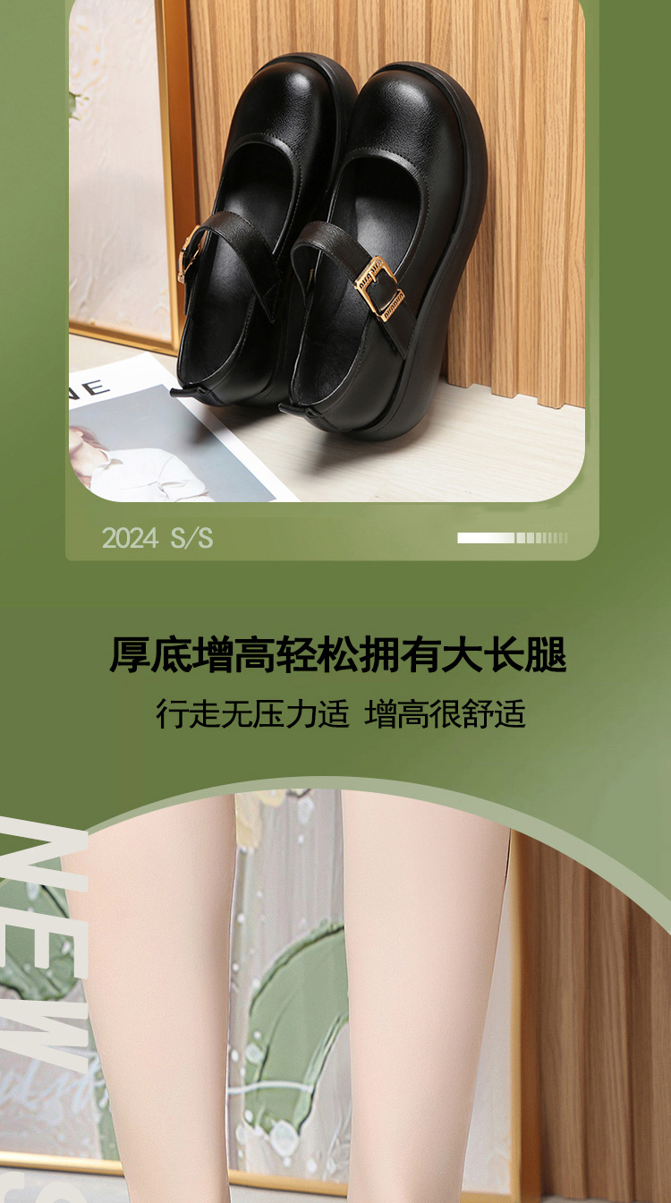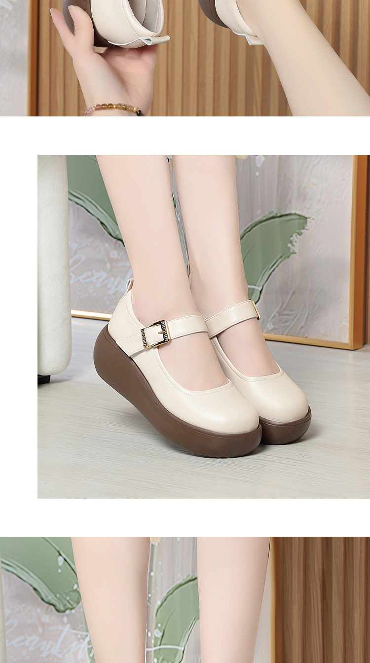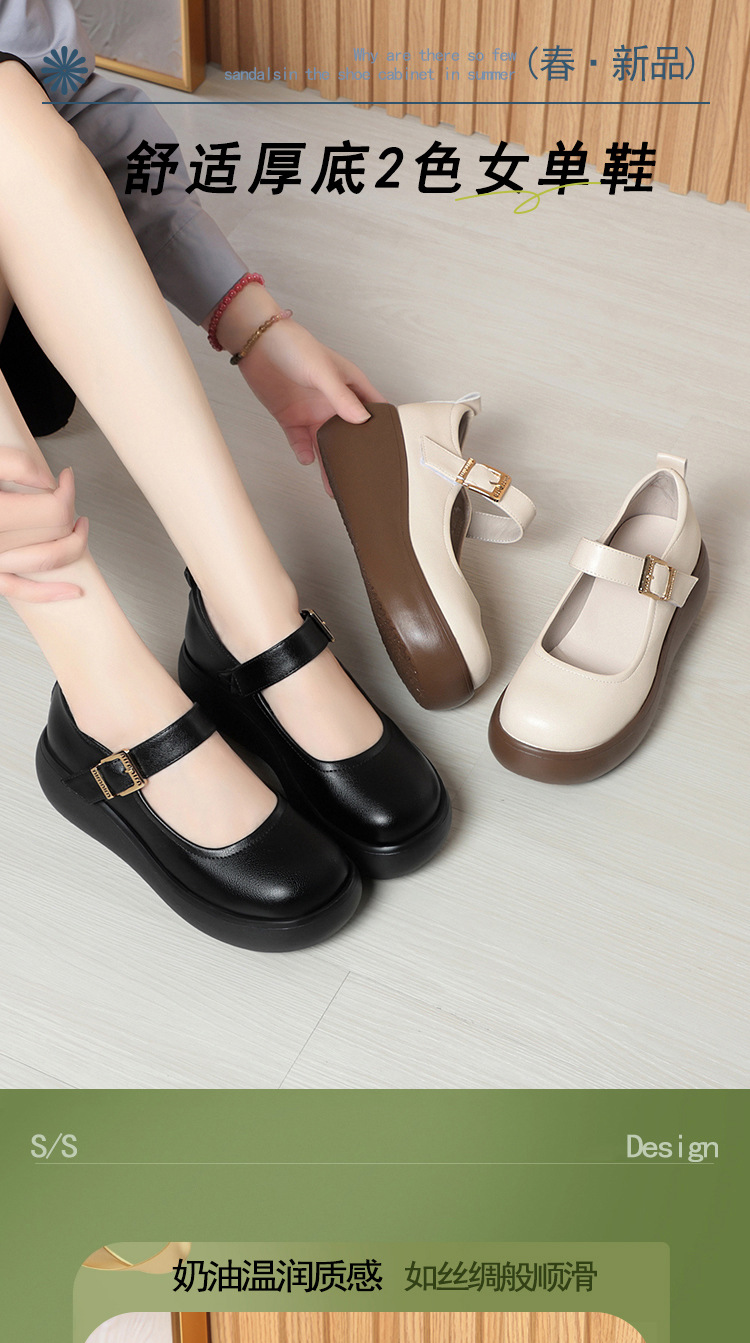 세련된 싱글 레이어 신발 쐐기 둥근 발가락 부드러운 바닥 편안한 플러스 사이즈 여성 신발 중년 신발 봄과 가을 여성의 원 스트랩 가죽 신발스토어 가기