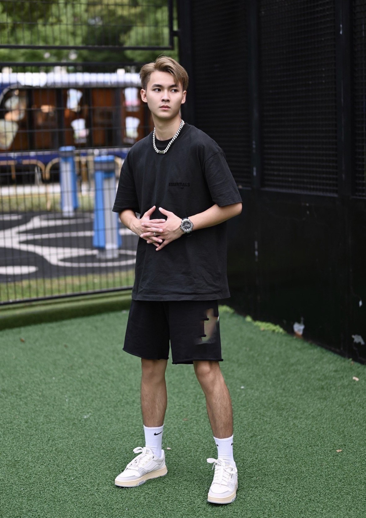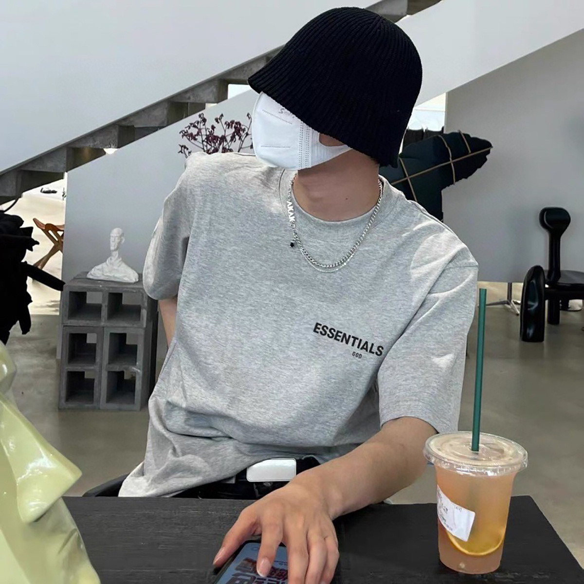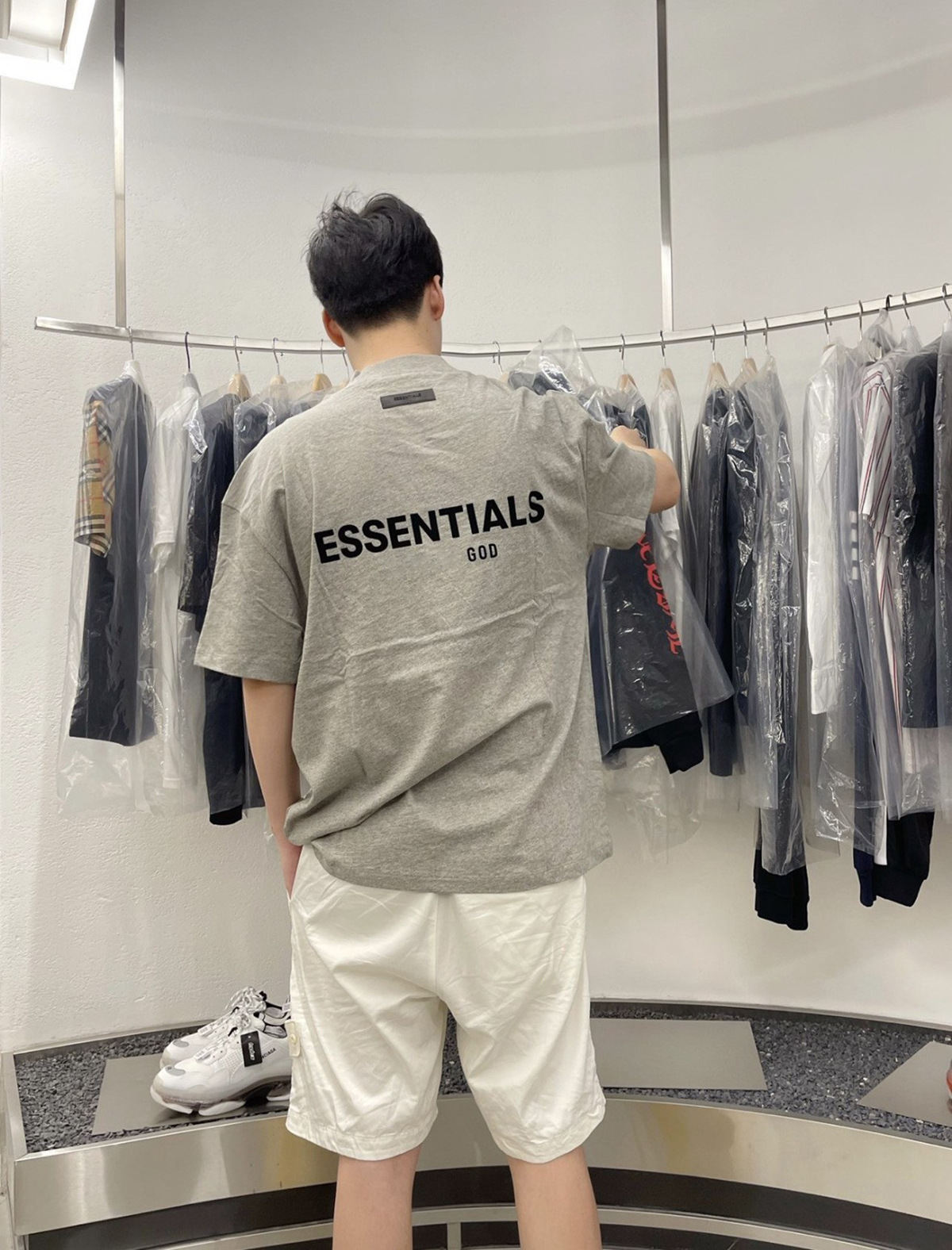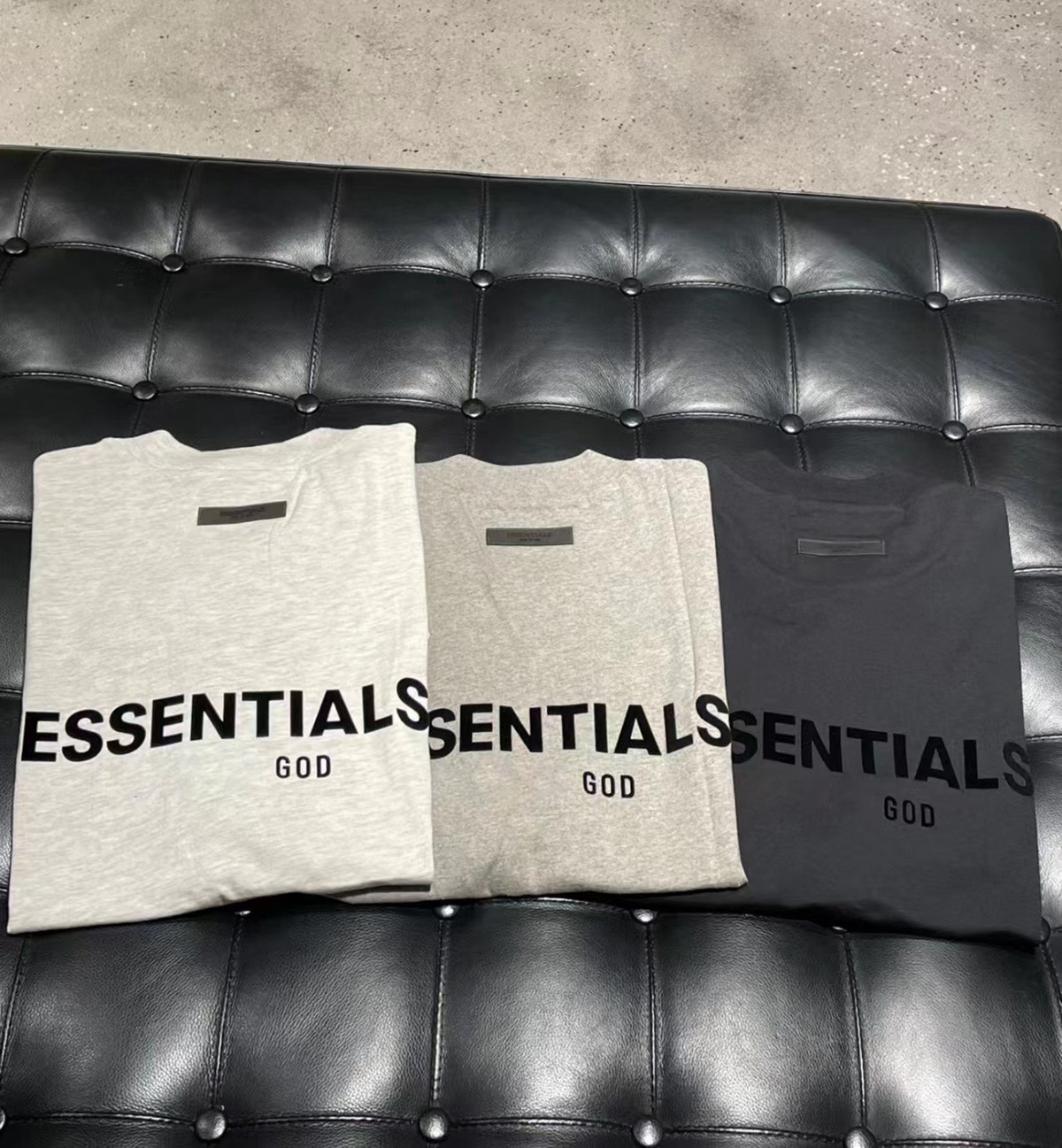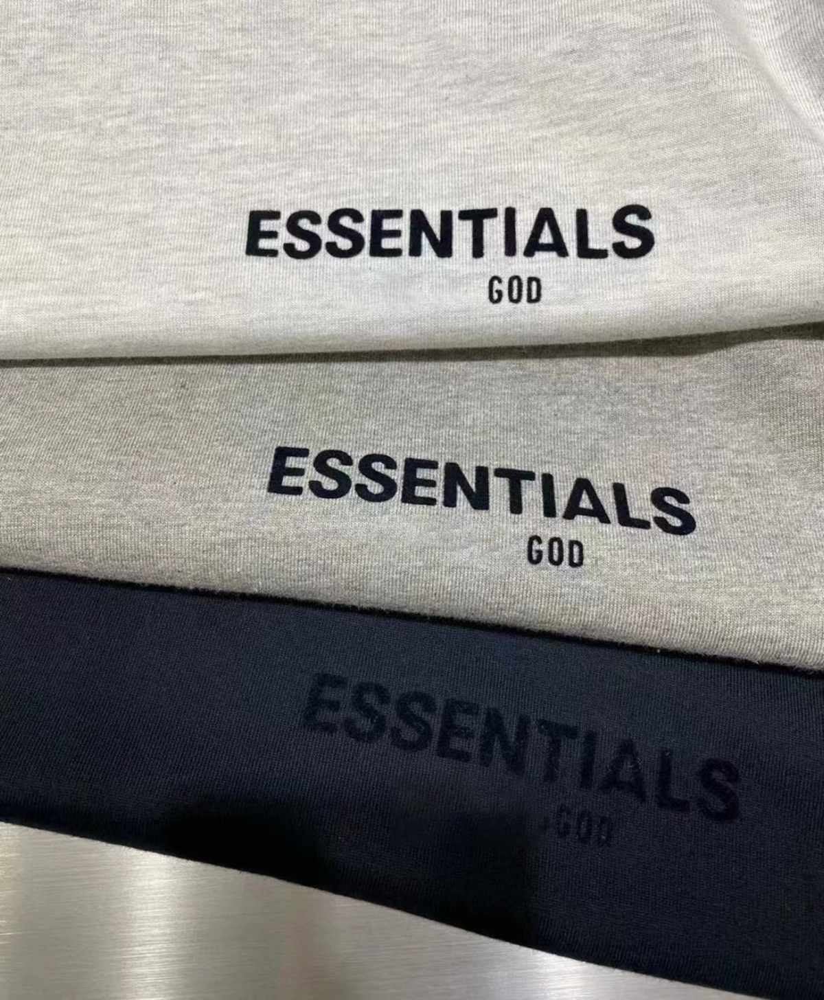 这一季新款摒弃沿用好几年的logo、改用植绒印花(静电植绒)在衣服版型设计上也做了些调整、比如更宽的领口,铁青色的配色等等。水洗和领标等辅料也更新换代、标全部是新的硅胶标、加上全新洗水唛、吊牌、特别是后背的硅胶ESSENTIALS加宽、全新的黑色外包装!面料克重240g ,原厂面料,洗水处理,不缩水不变形、螺纹单独定制调纱定染、 燕麦色不是染色工艺,花织工艺单独定制,重点印花是进口霓虹国静电植绒 底面先定位涂上特制背胶静电冲压下再覆盖植绒手感牢固度绒感、细节上的设计处理充满诚意