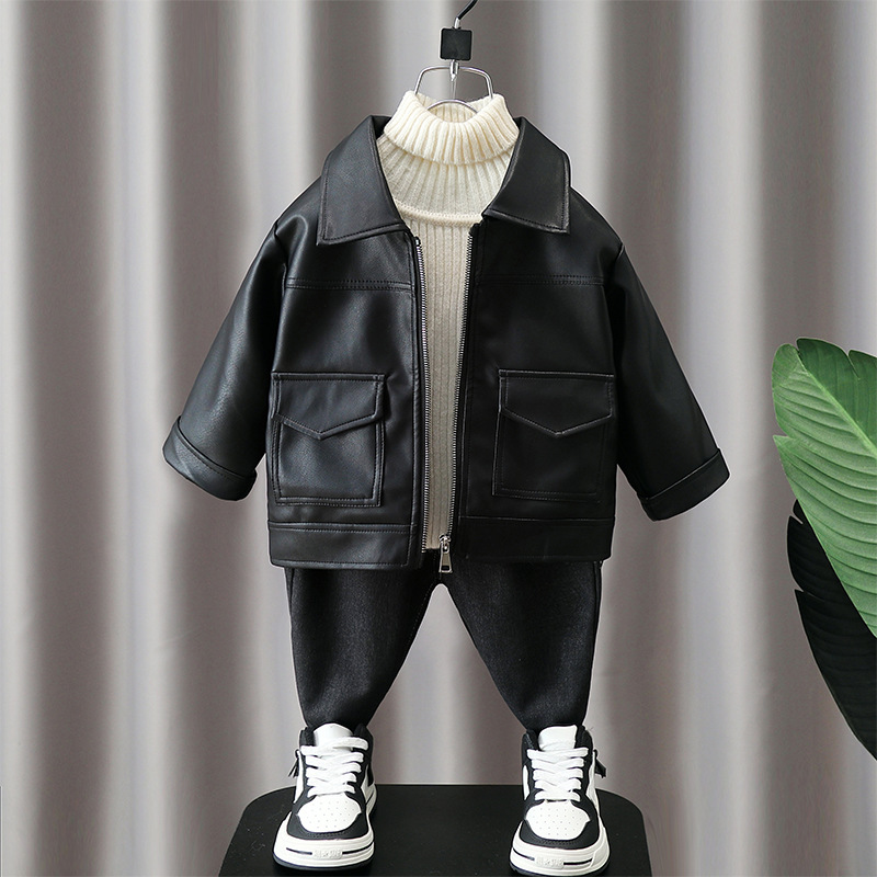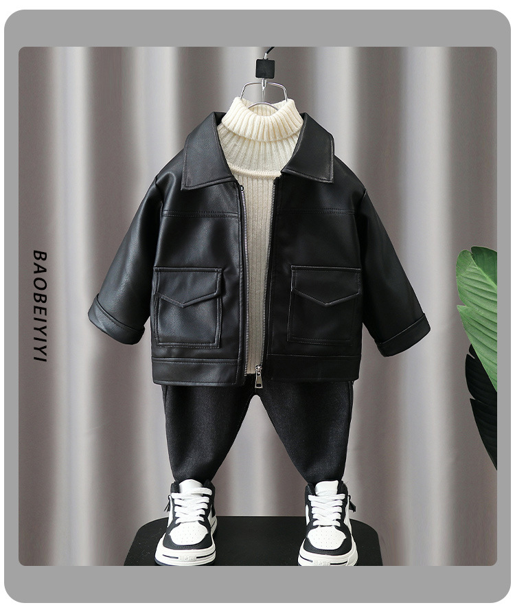 남아용 2025 봄 가을 가죽 재킷 신상 아동용 바이커 스타일 가죽 재킷 아기용 카라 셔츠 패셔너블