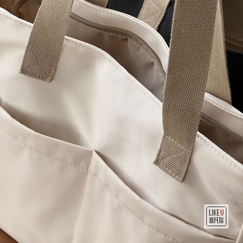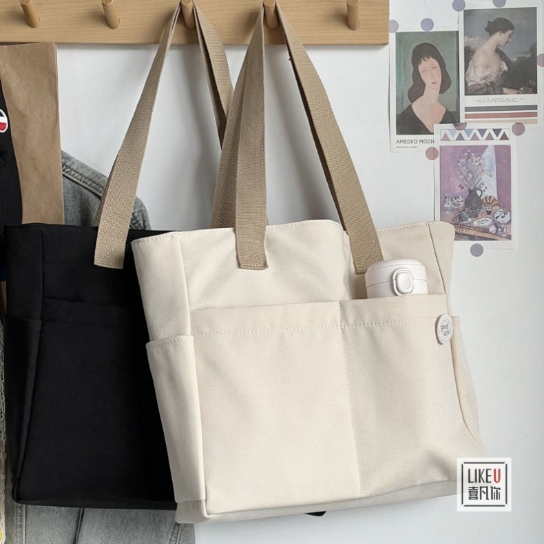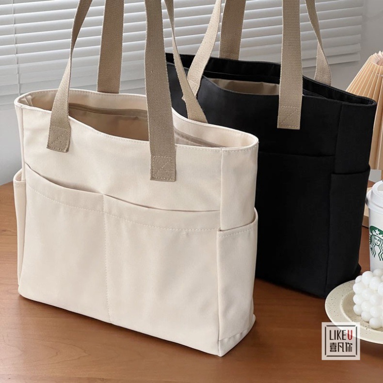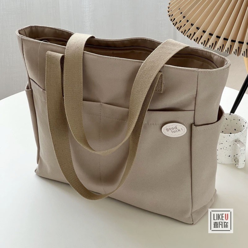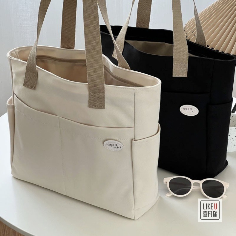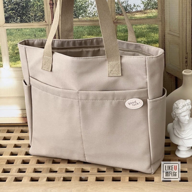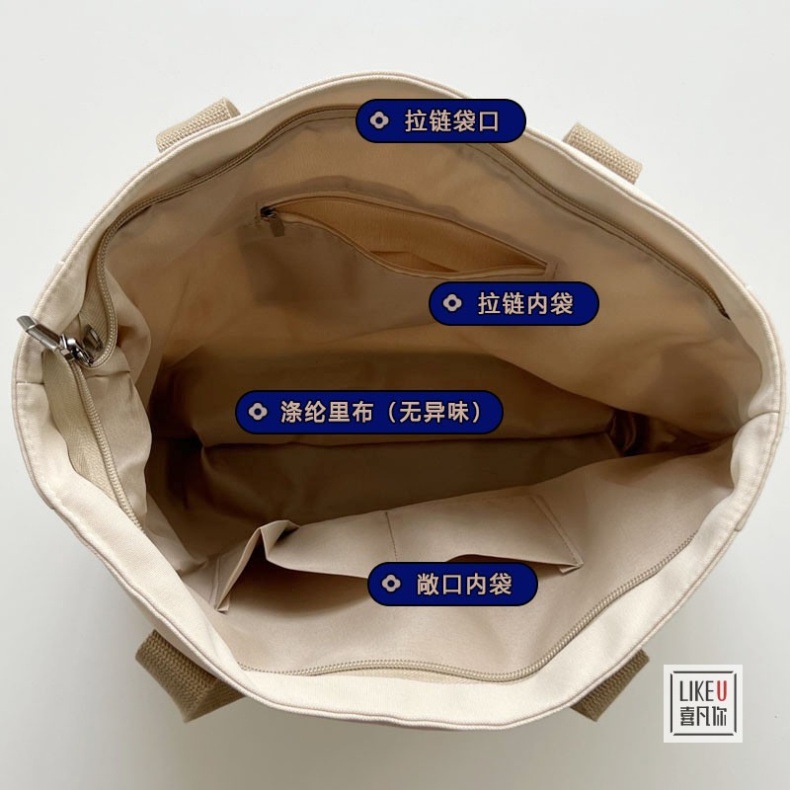 원래 디자인 일본식 지퍼 통근 두꺼운 캔버스 토트 백 캐주얼 예술적 학생 간단한 어깨 핸드백