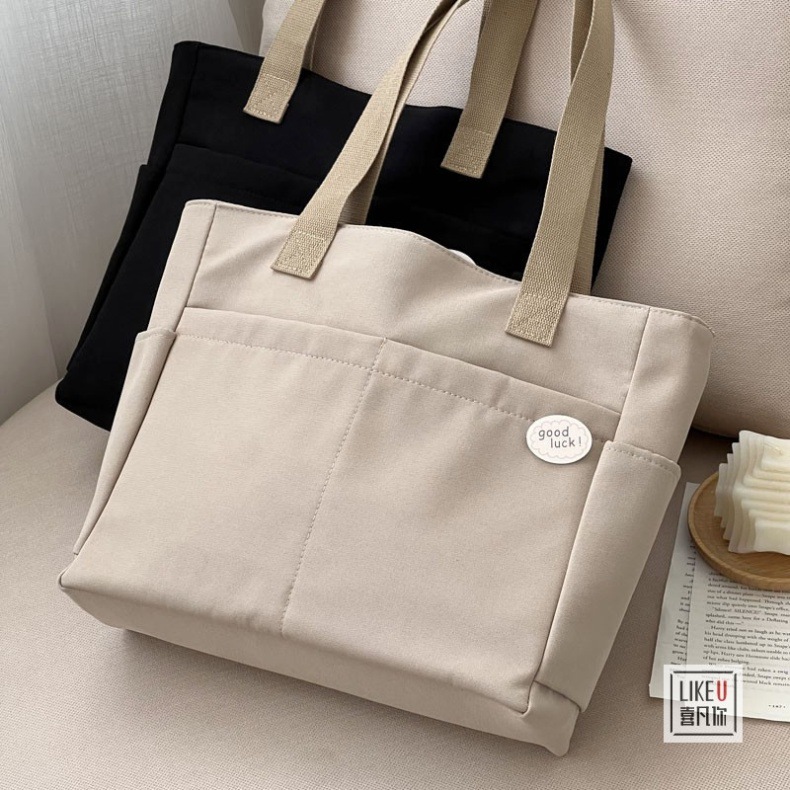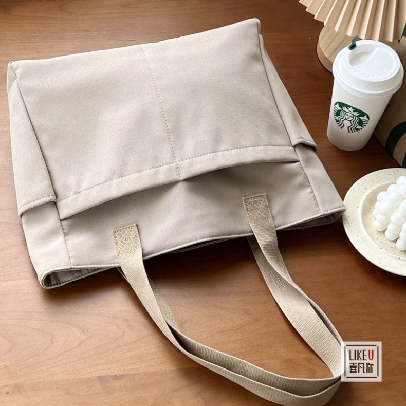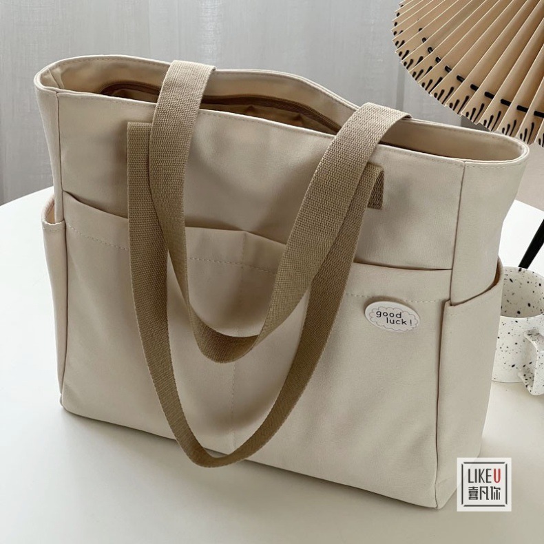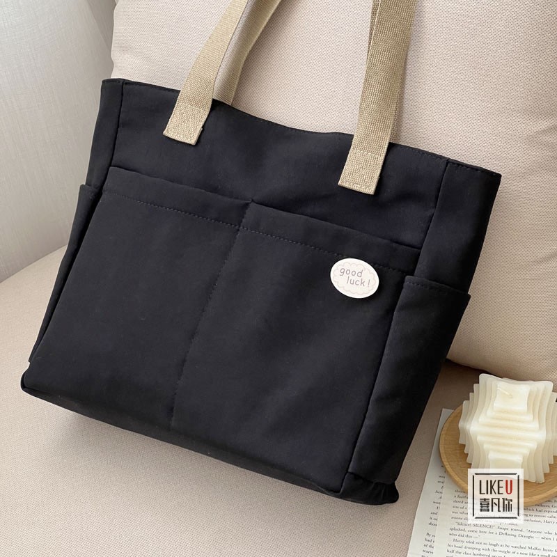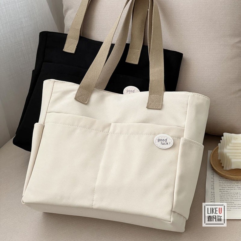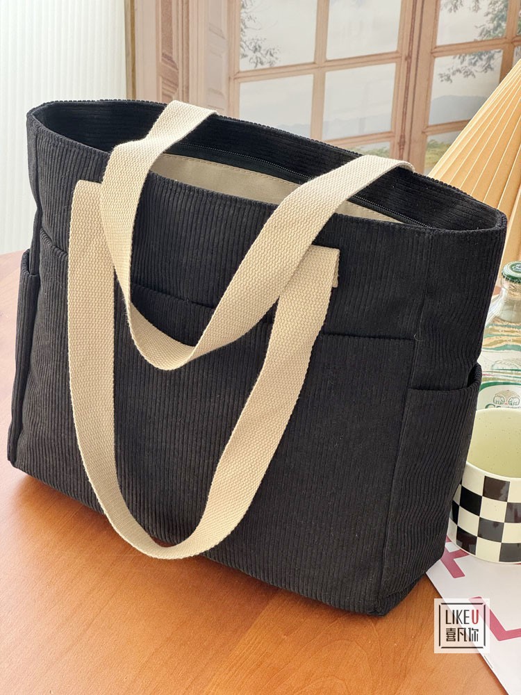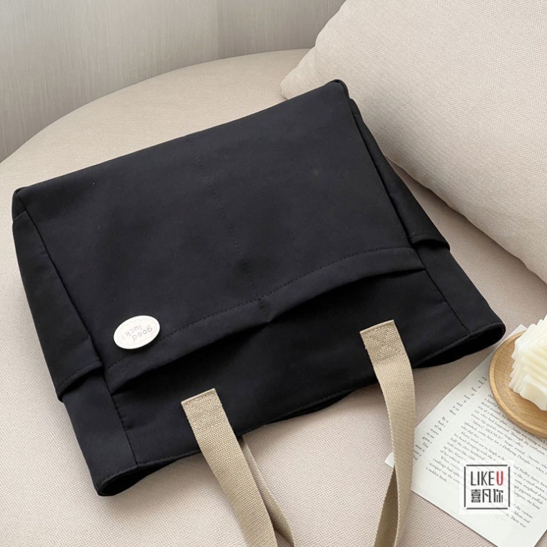 원래 디자인 일본식 지퍼 통근 두꺼운 캔버스 토트 백 캐주얼 예술적 학생 간단한 어깨 핸드백