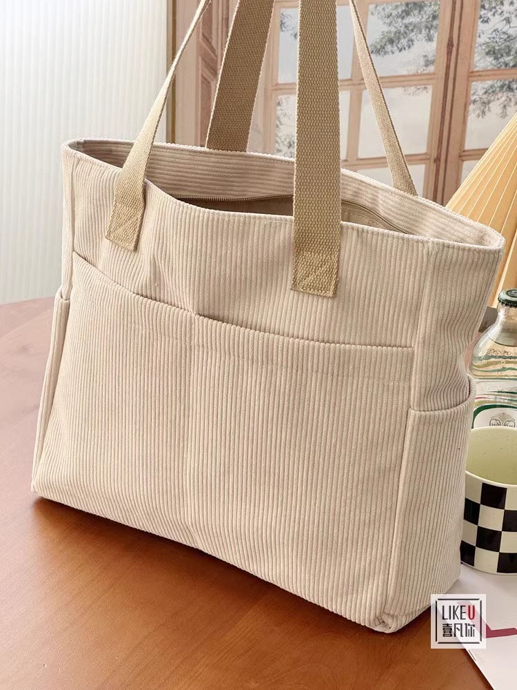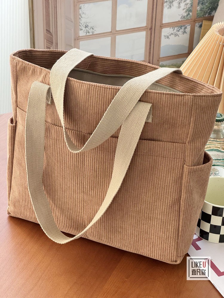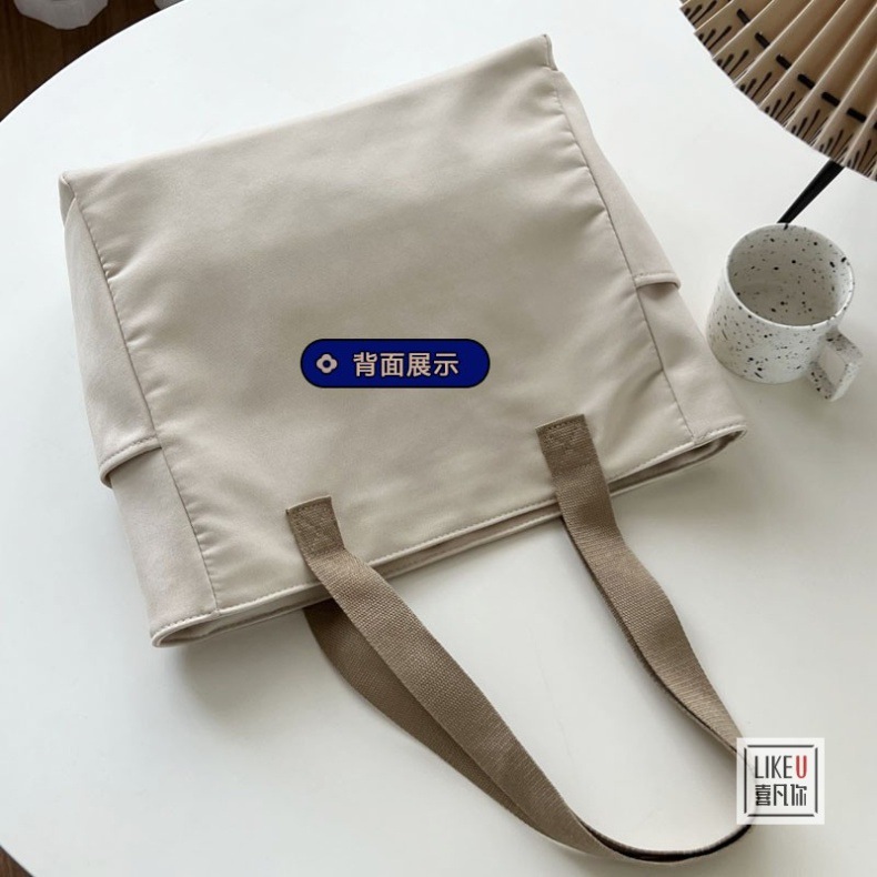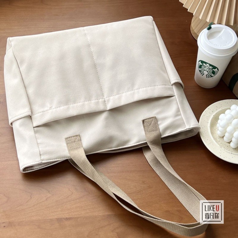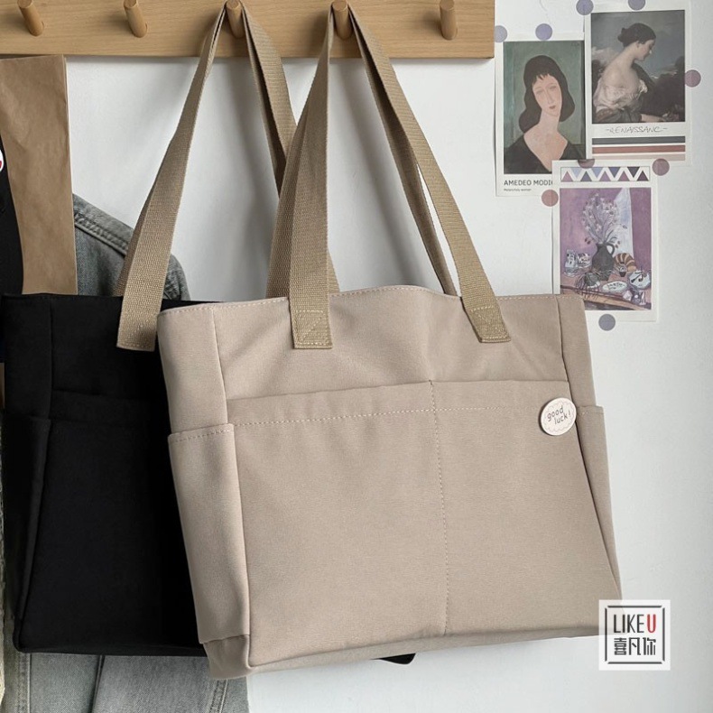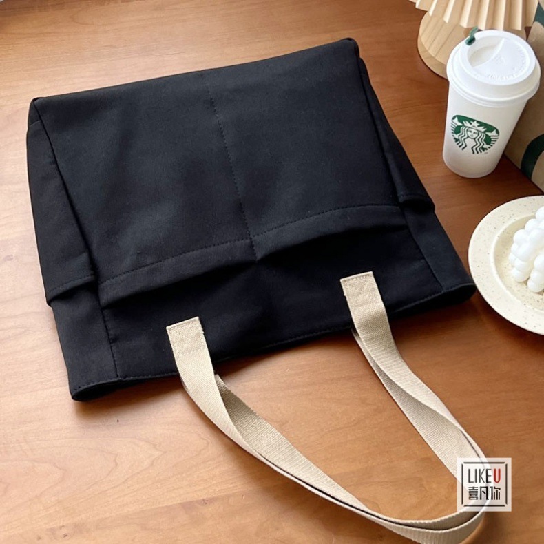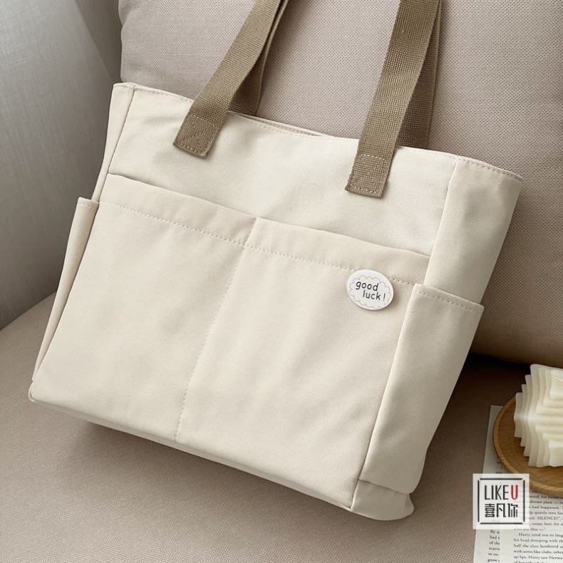 원래 디자인 일본식 지퍼 통근 두꺼운 캔버스 토트 백 캐주얼 예술적 학생 간단한 어깨 핸드백