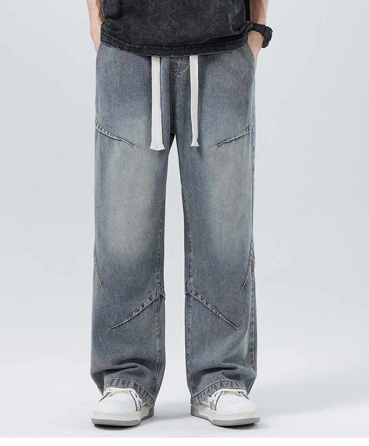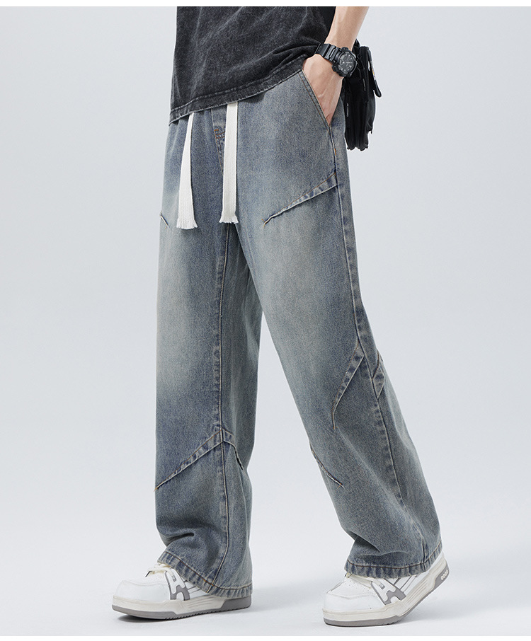 2024 봄 뉴 인 홍콩 스타일 플러스 사이즈 뚱뚱한 청바지 남성용 느슨한 캐주얼 한국식 트렌디 한 스트레이트 팬츠 남성스토어 가기