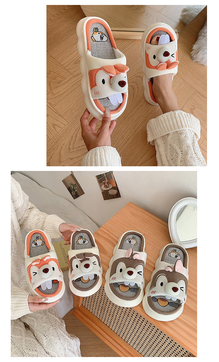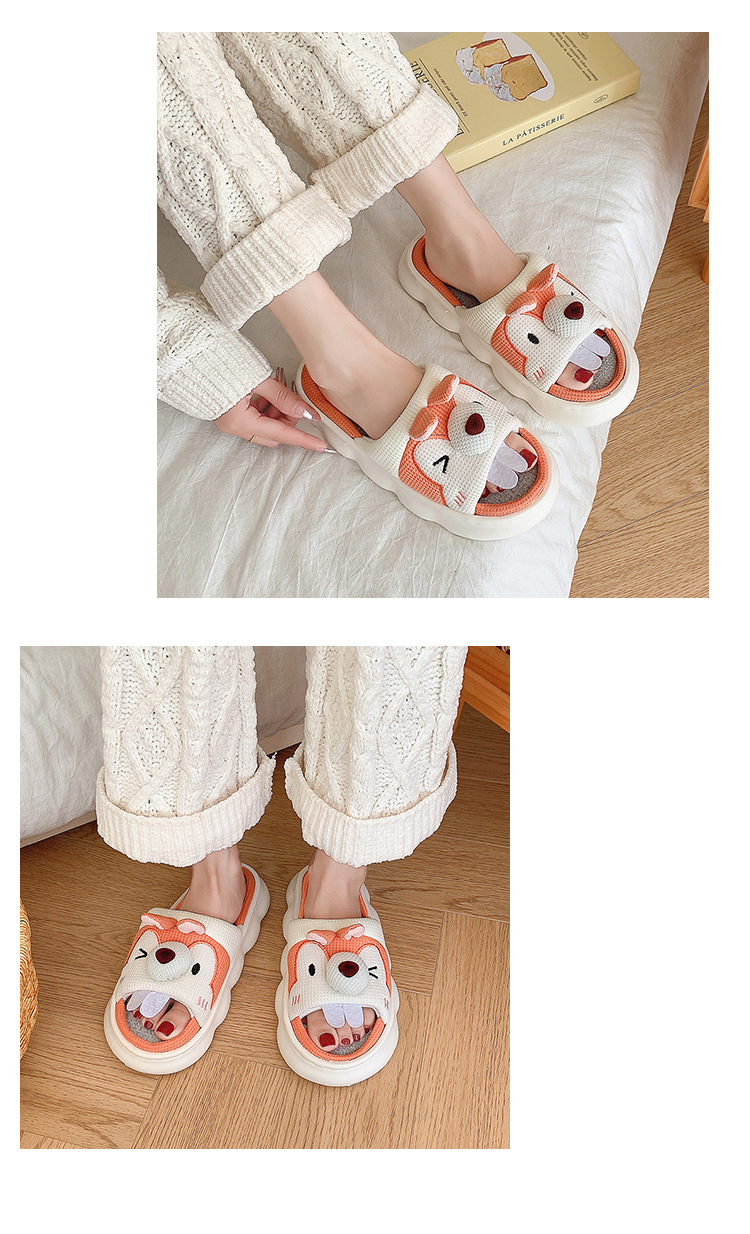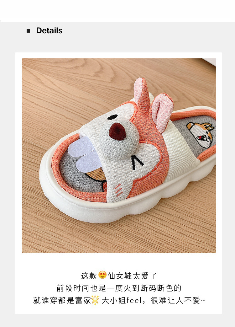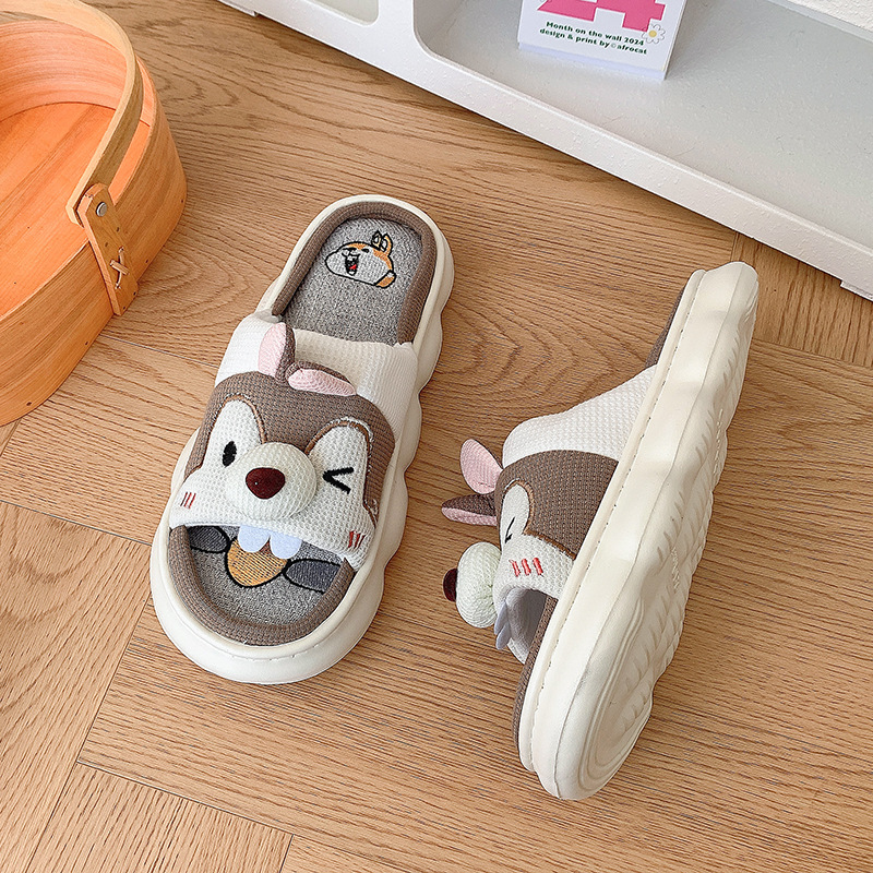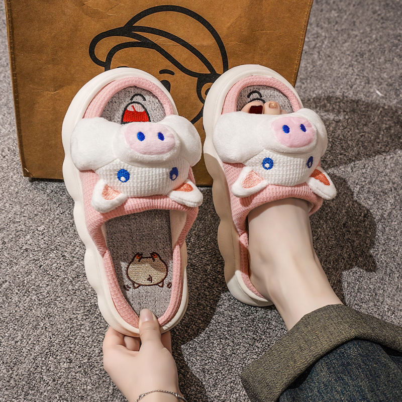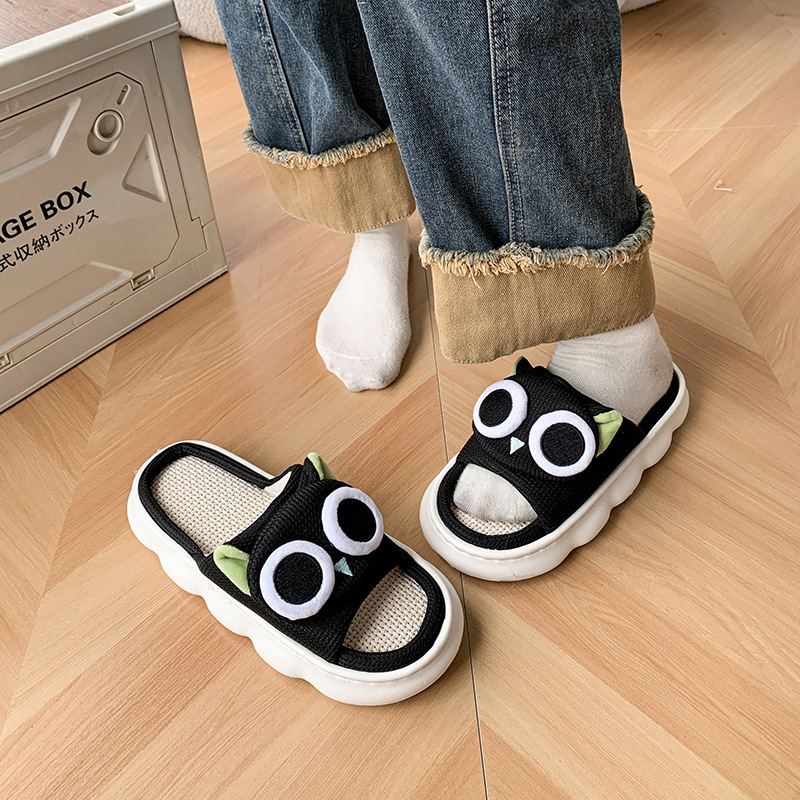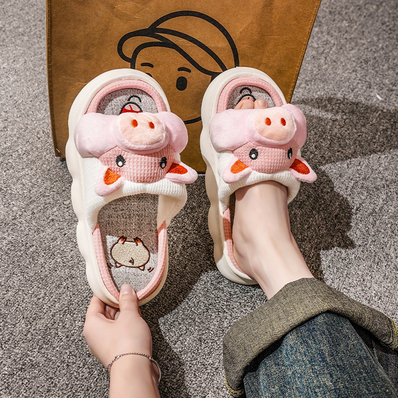 폐 느낌 리넨 슬리퍼 여성 여름 홈 실내 만화 공주 귀여운 두꺼운 밑창 통기성 땀 흡수성 봄 슬리퍼