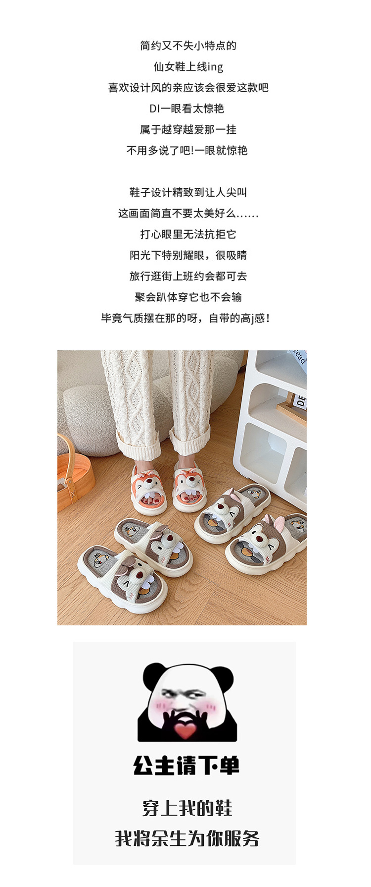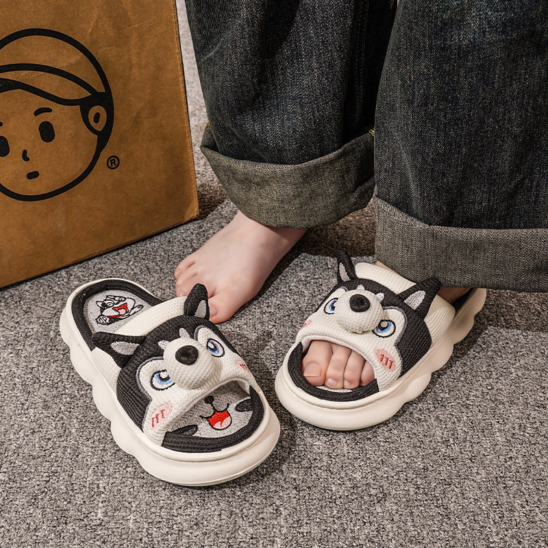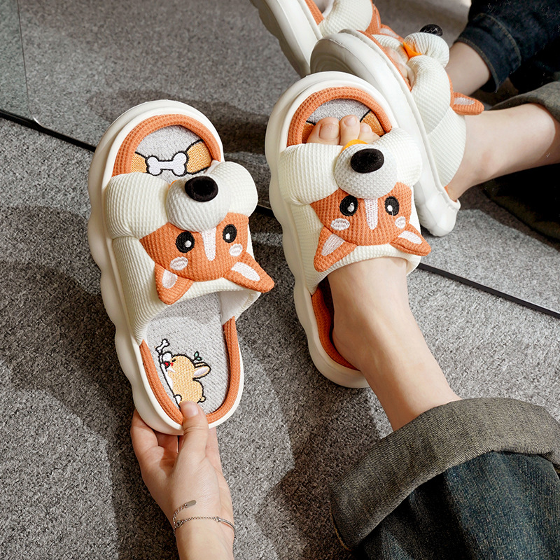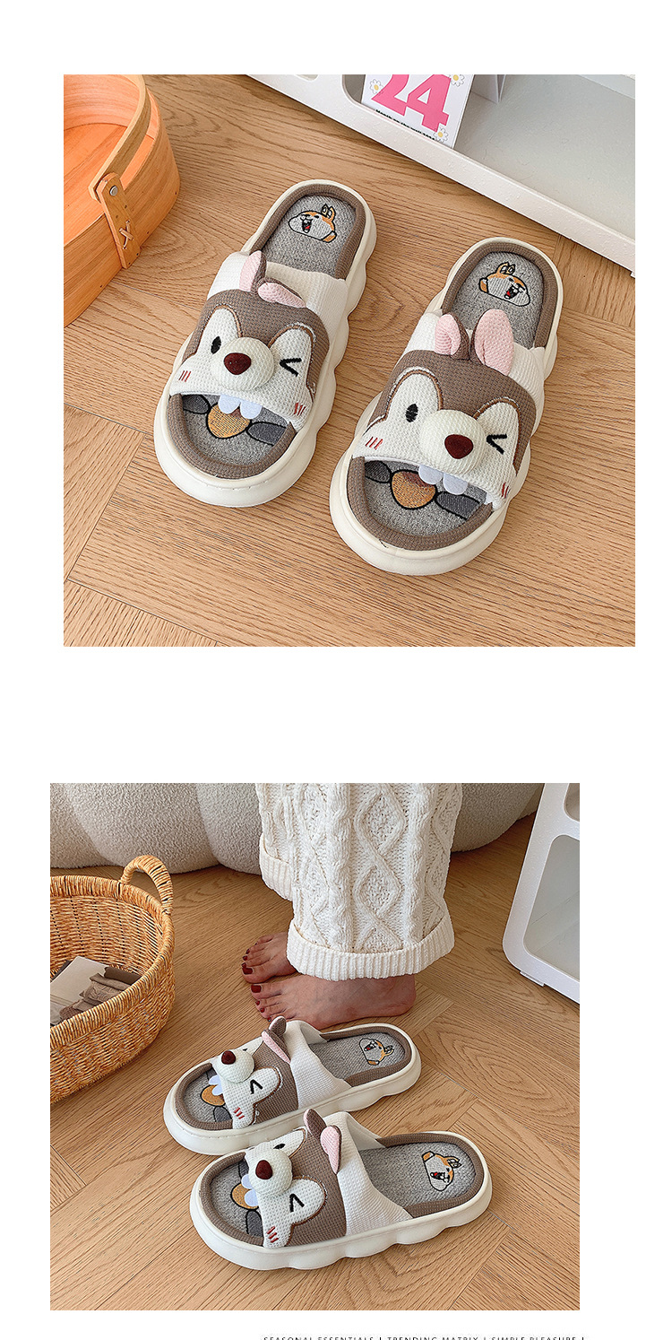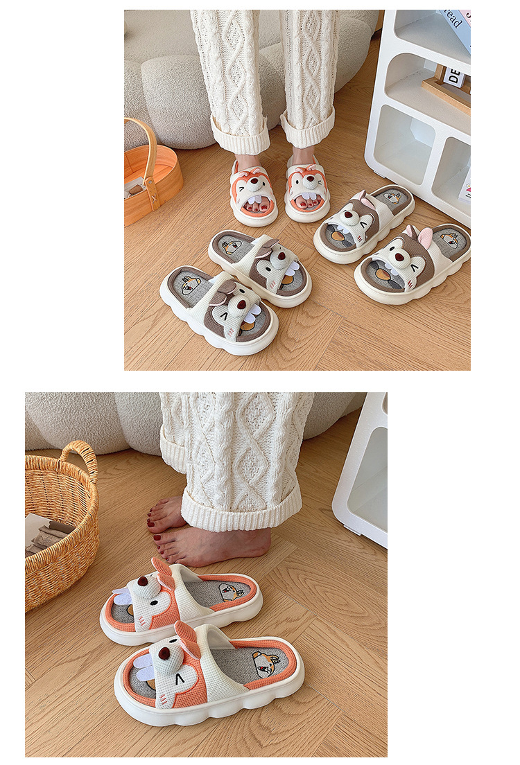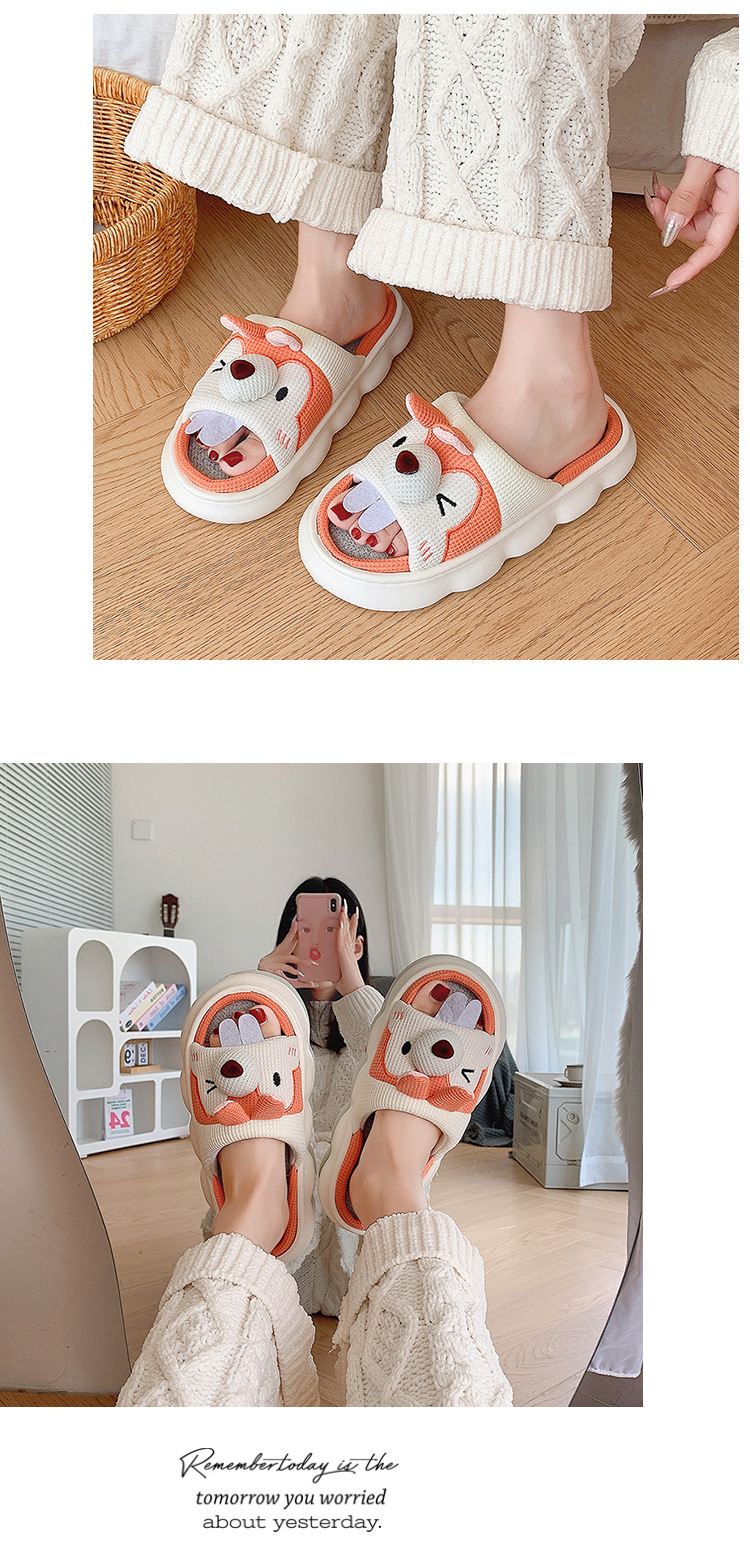 폐 느낌 리넨 슬리퍼 여성 여름 홈 실내 만화 공주 귀여운 두꺼운 밑창 통기성 땀 흡수성 봄 슬리퍼