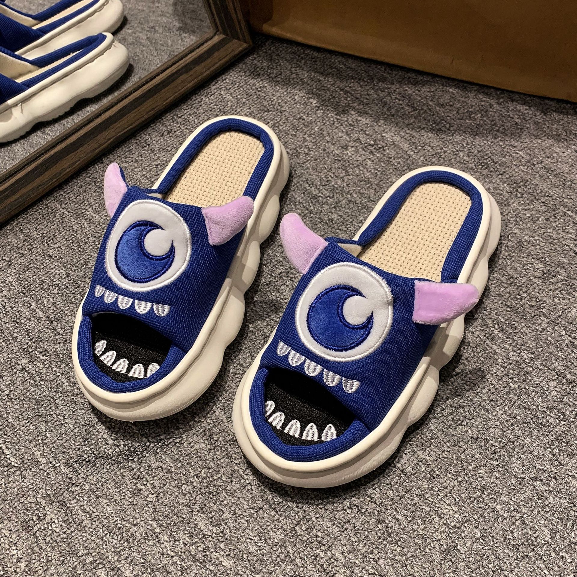 폐 느낌 리넨 슬리퍼 여성 여름 홈 실내 만화 공주 귀여운 두꺼운 밑창 통기성 땀 흡수성 봄 슬리퍼스토어 가기