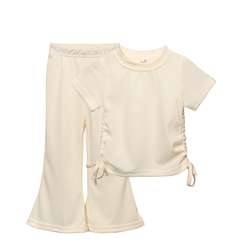 【产品】2024夏季新款童装儿童短袖套装女童韩版潮童服装T恤喇叭裤两件套