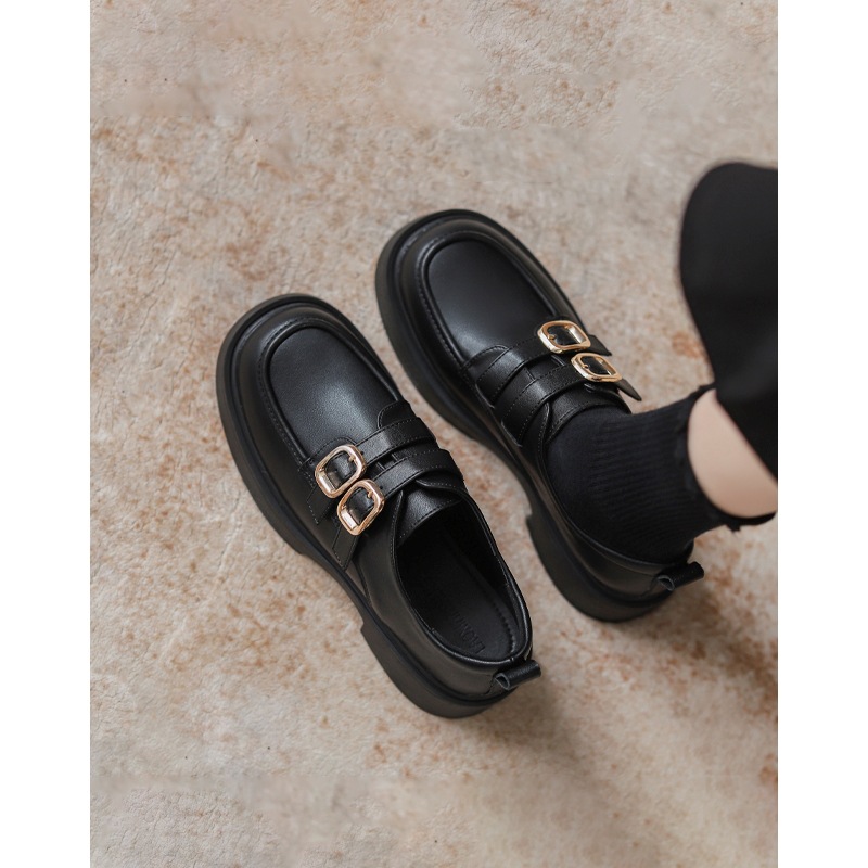 부드러운 가죽 버전~ 여성용 로퍼 2025 봄 신상 블랙 슬립온 jk 단화 두꺼운 밑창 영국 스타일 작은 가죽 신발스토어 가기