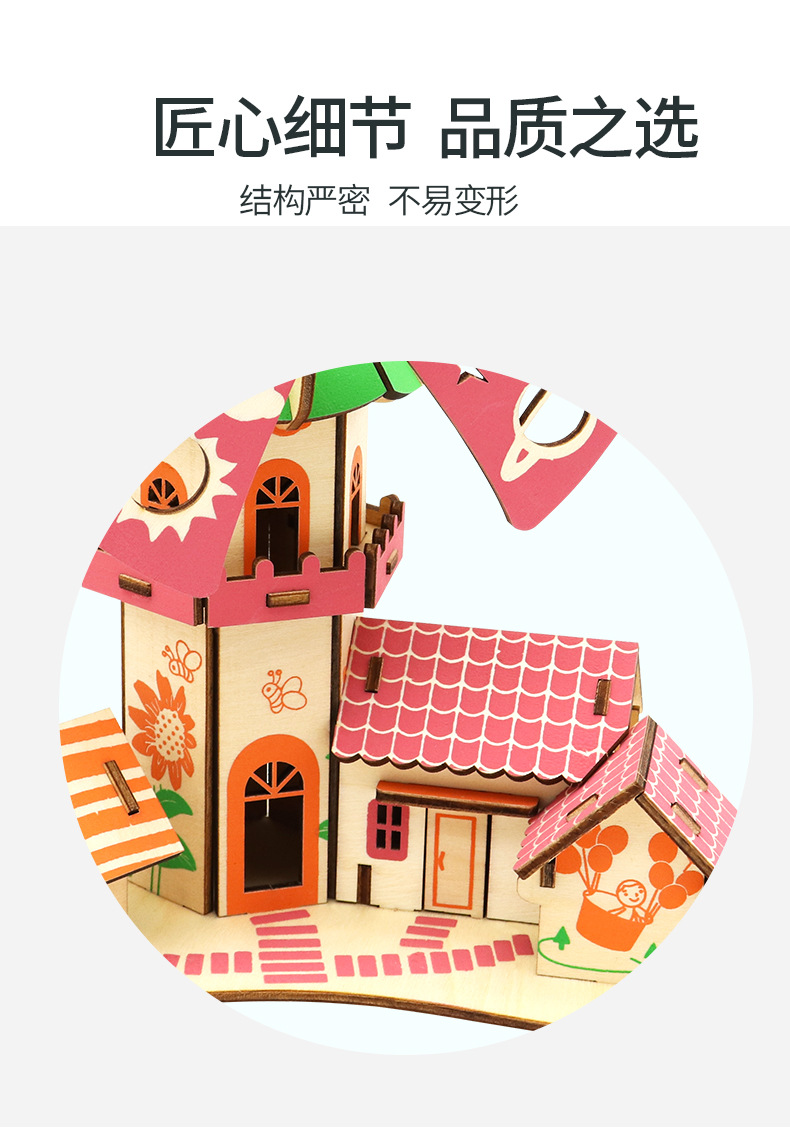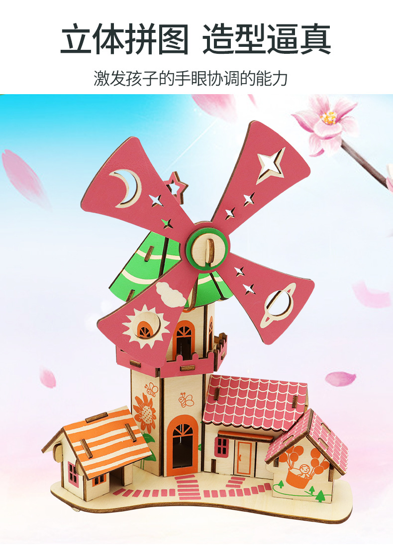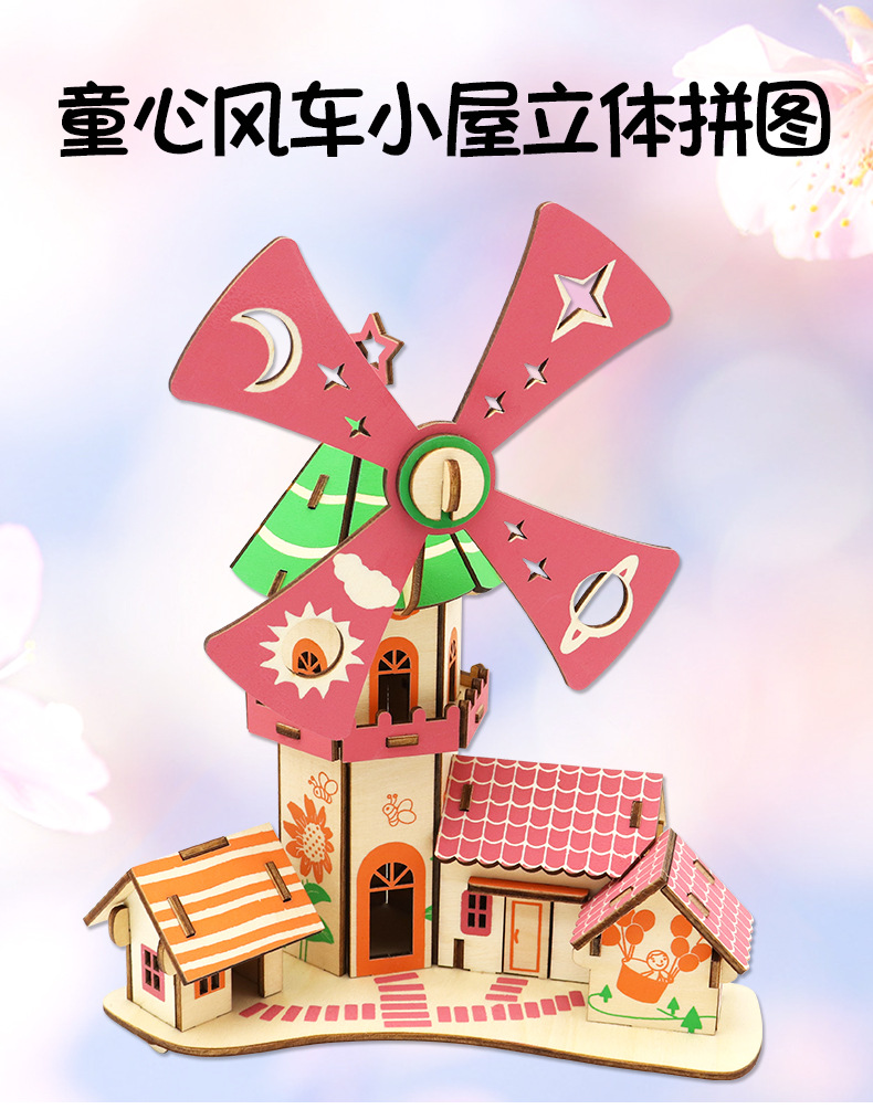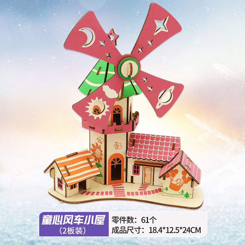 어린이 심장 풍차 코티지 나무 퍼즐 3D 모델 장난감 소년 소녀 6 세 이상 수제 선물 포장 도매