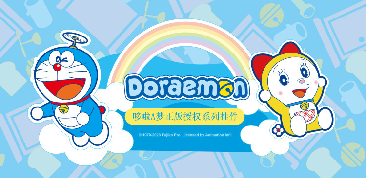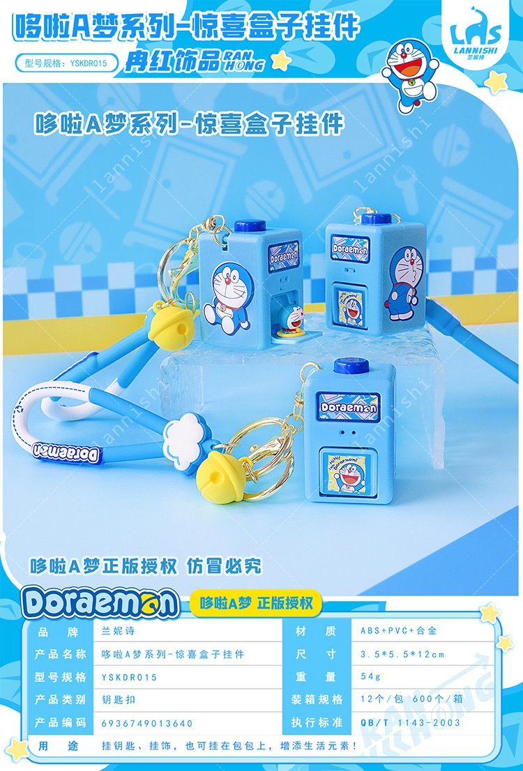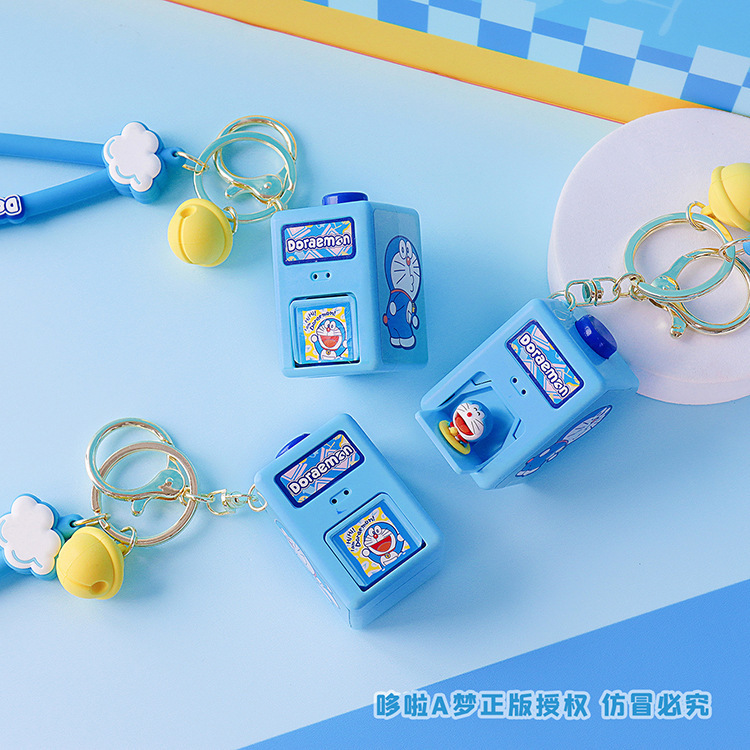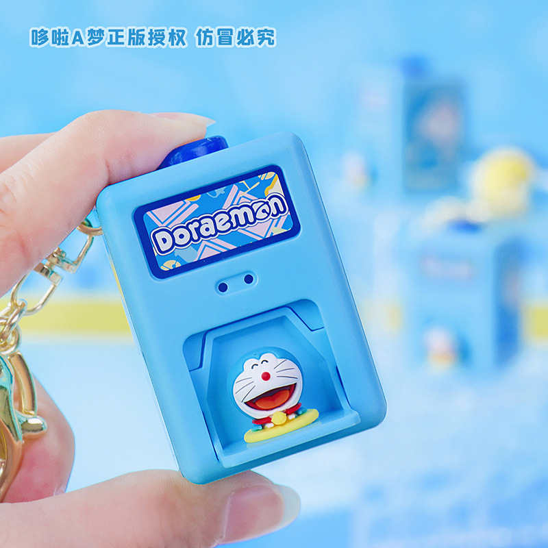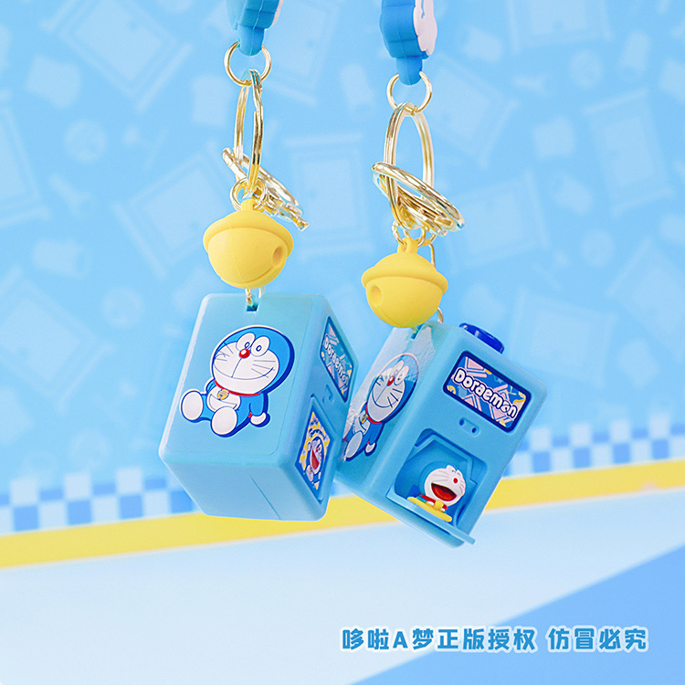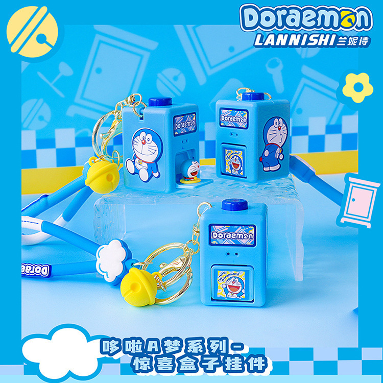 정품 도라에몽 깜짝 상자 펜던트 키 체인 투석기 상자 액세서리 재미있는 장난감 창조적 인 선물 도매스토어 가기