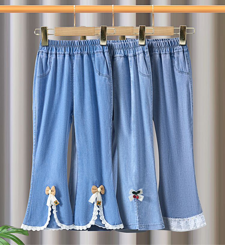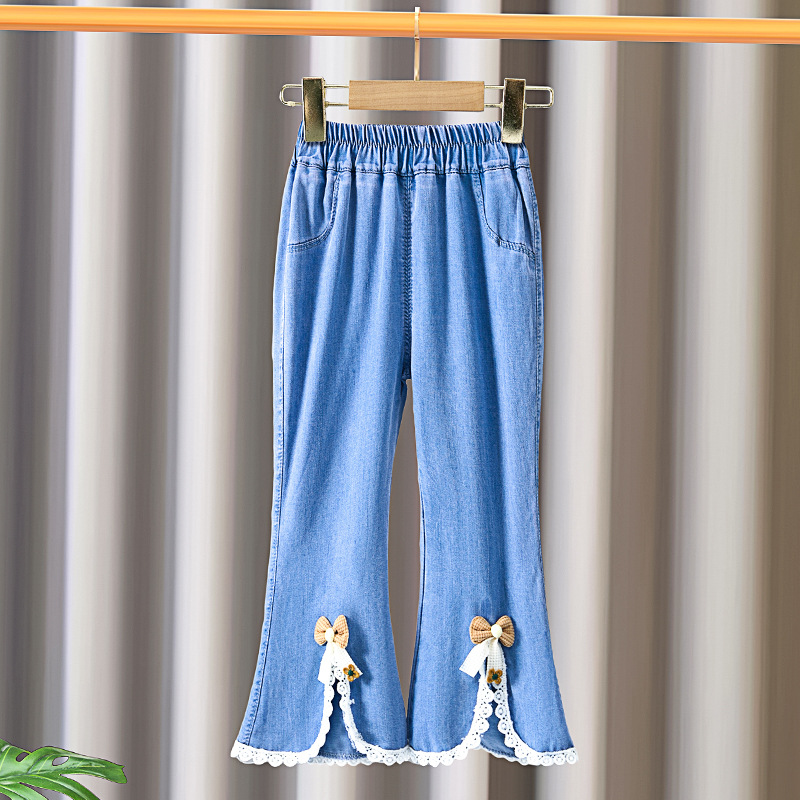 여아 가을 바지 겉옷 봄, 가을 청바지 2025 새로운 스타일 마이크로 플레어 바지 아동용 슬릿 플레어 바지스토어 가기