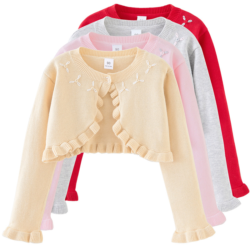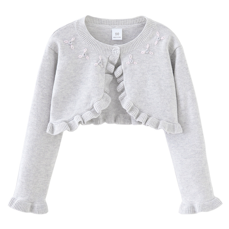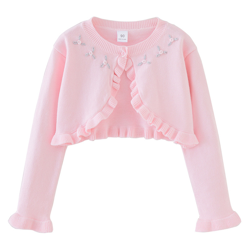 국경 둥근 목 손 후크 꽃 소녀 니트 카디건 숄 코트 어린이 아기 스웨터 카디건 원피스 배달